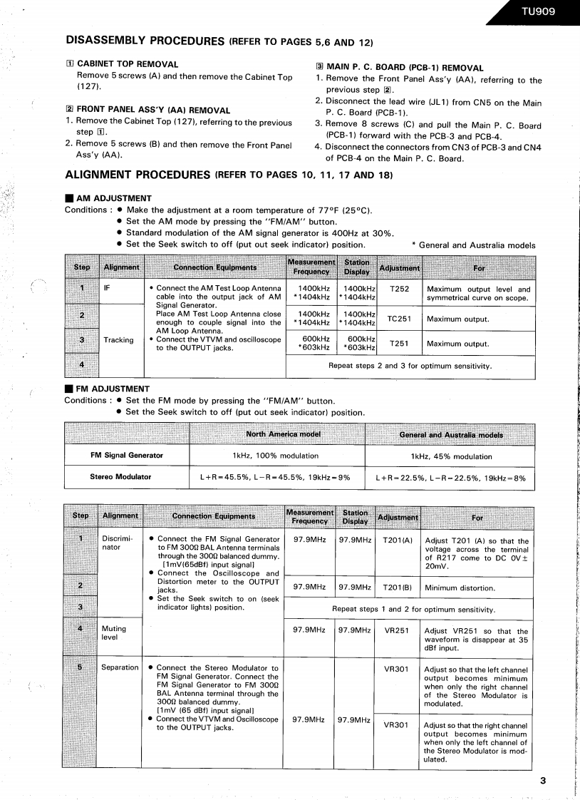 The Harman KardonModel TU909Manual 139ADIGITAL SYNTHESIZED QUARTZ-LOCKED TUNERTU909Technical Manual官君The following marks found in the parts list of this manual identifythe models as follows.North America area model Black versionGeneral model Black versionAustralia model Black versionharman/kardon7492938836aart88egW9e8aNe17a7