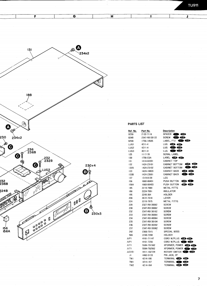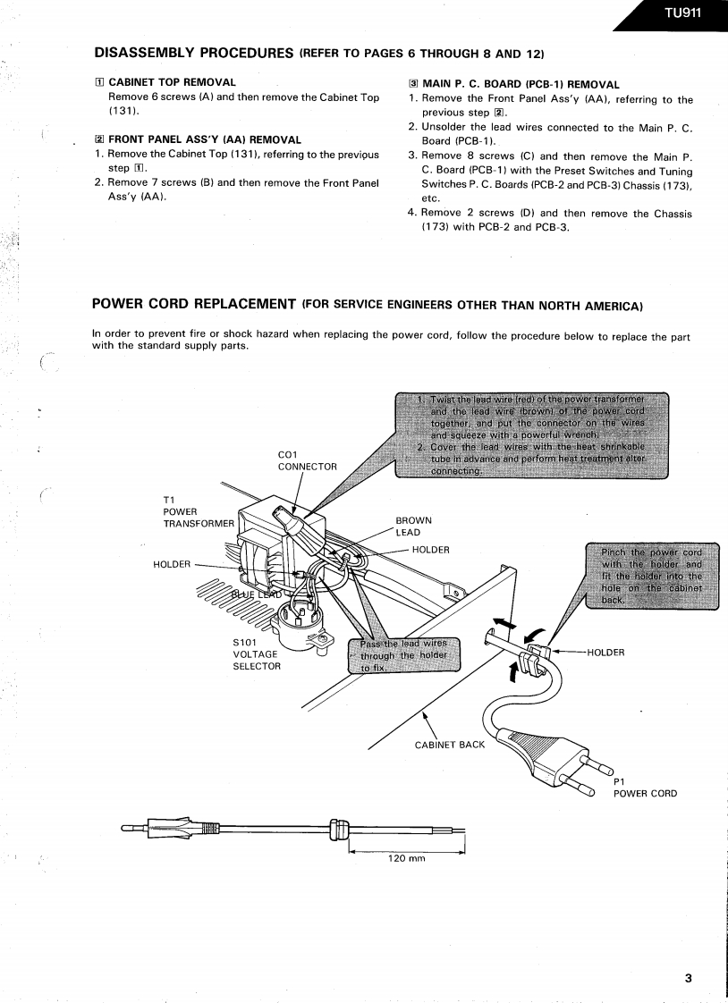 The Harman KardonModel TU911Manual 119ADIGITAL SYNTHESIZED QUARTZ-LOCKED TUNERTU911Technical Manualà白白台简E1888B台尚白尚宣正The following marks found in the parts list of this manual identifythe models as follows.North America area modelNorth America area model Black versionG:General modelGeneral model Black versionharman/kardon240 Crossways Park West,Woodbury.N.Y.117971112-315119A3 P.088709 1500 Printed in Japan