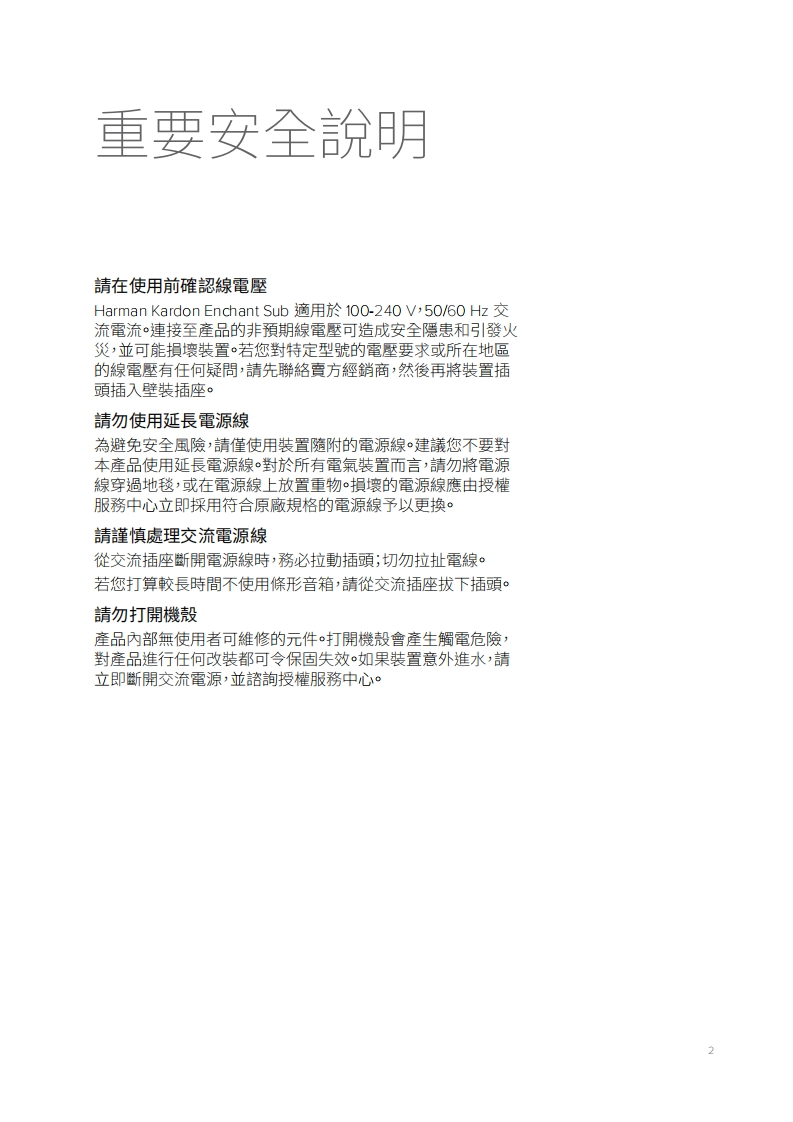 HA_HK_Enchant_Sub_使用说明书手册_Global_V4_ZH-TW找手册网29天前发布关注私信0.88MB16页041HA_HK_Enchant_Sub_使用说明书手册_Global_V4_ZH-TW此内容为付费资源,请付费后查看¥19¥21黄金会员免费钻石会员免费登录购买付费资源 第1页 / 共16页 第2页 / 共16页 第3页 / 共16页 第4页 / 共16页 第5页 / 共16页 第6页 / 共16页 第7页 / 共16页 第8页 / 共16页 第9页 / 共16页 第10页 / 共16页 试读已结束,还剩6页,您可下载完整版后进行离线阅读 THE END哈曼卡顿/飞利浦 文本预览 ENCHANT SUB使用者手冊harman/kardonHARMAN 查看更多 收起部分 喜欢就支持一下吧收藏