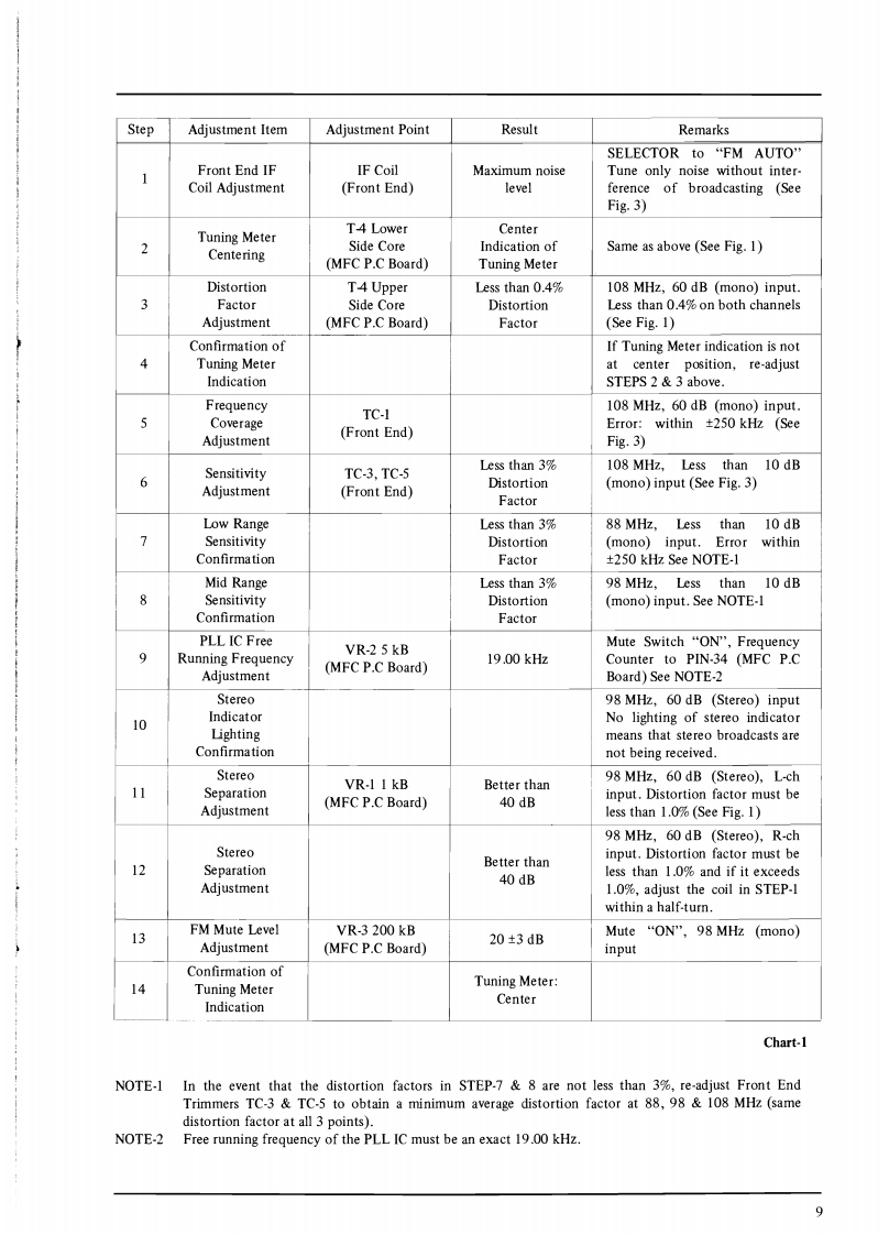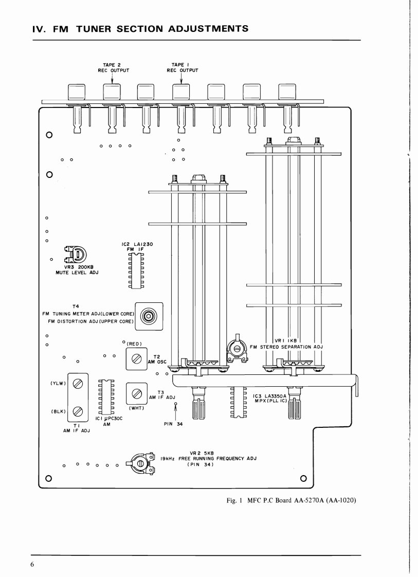SECTION 1SERVICE MANUALTABLE OF CONTENTSI.SPECIFICATIONS .................................................................2IL.DISMANTLING0 F UNIT4.ARRANGEMENT OF PRINCIPAL PARTS...............................................IV.FM TUNER SECTION ADJUSTMENTS................................................6V.AM TUNER SECTION ADJUSTMENT (Model AA-1020)...................................10VI.AM (LW AND MW)TUNER SECTION ADJUSTMENT (Model AA-1020L).....................11I.LW SECTION ADJUSTMENT.......................................................112.MW SECTION ADJUSTMENT.......................................................11VII.MAIN AMPLIFIER ADJUSTMENT.....................................................12VII.TUNINGCORD THREADING.........................................................13X.CLASSIFICATION OF VARIOUS P.C BOARDS..........................................141.P.C BOARD INTERCHANGEABILITY CHART.........................................142.COMPOSITION OF VARIOUS P.C BOARDS..................................15For basic adjustments,measuring methods,and operating principles,refer to GENERAL OPERAT.ING PRINCIPLES AND ADJUSTMENTS.1