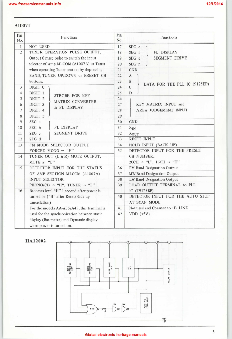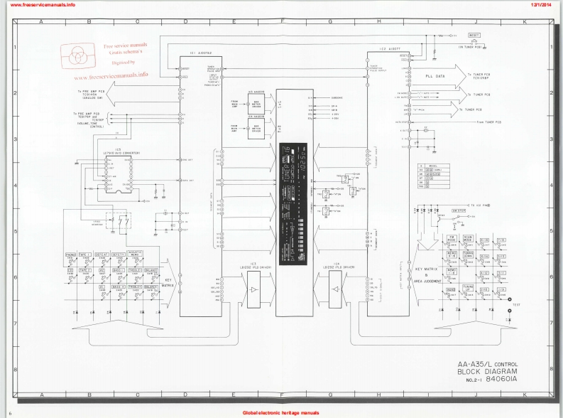 www.freeservicemanuals.info121/2014AKAIFree service manualsGratis schema'sDigitized bywww.freeservicemanuals.infoMODEL AA-A35/LTABLE OF CONTENTS1.SCHEMATIC DIAGRAM OF ICs···.·.22.CONTROL BLOCK DIAGRAM AA-A35/L....63.TUNER BLOCK DIAGRAM AA-A35/L,···..74.CONNECTION DIAGRAM AA-A35/L·······.85.MAIN AMP PC BOARD,AND OTHERS AA-A35/L96.CONTROL/FLD SCHEMATIC DIAGRAM AA-A35/L107.CONTROL/FLD PC BOARD AA-A35/L.......118.TUNER SCHEMATIC DIAGRAM AA-A35....129.TUNER PC BOARD AA-A35..........1310.TUNER SCHEMATIC DIAGRAM AA-A35L...1411.TUNER PC BOARD AA-A35L.·.·.·..·.·1512.PRE AMP SCHEMATIC DIAGRAM AA-A35/L1613.PRE AMP PC BOARD AA-A35L·.·..··..1714.MPX SCHEMATIC DIAGRAM AA-A35/L......1815.FRONT END SCHEMATIC DIAGRAM AA-A35/L...1816.MPX PC B0 ARD AA-A35/L·...··1917.FRONT END PC BOARD AA-A35/L.......19Global oloctronic horitago-manwals-