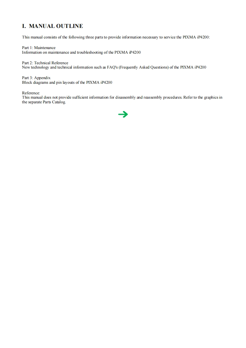 PIXMA IP4200SERVICE MANUALRevision 0QY8-13A9-000COPYRIGHT2005 CANON INC.CANON PIXMA iP4200 072005 XX 0.00-0ScopeThis manual has been issued by Canon Inc.,to provide the service technicians of this product with the informationnecessary for qualified persons to learn technical theory,installation,maintenance,and repair of products.The manualcovers information applicable in all regions where the product is sold.For this reason,it may contain information that isnot applicable to your region.Revision