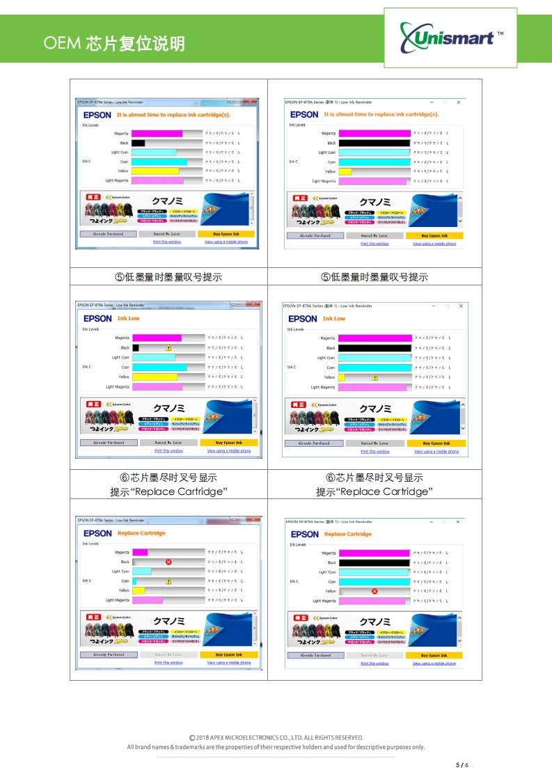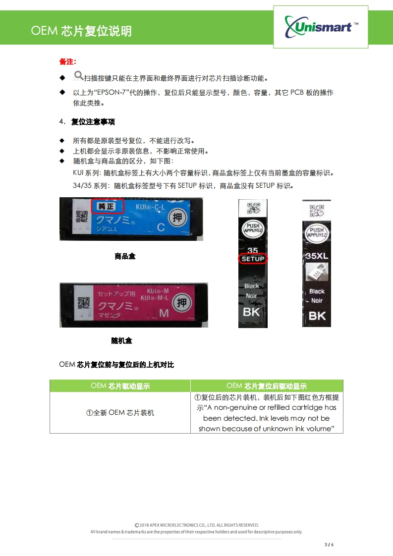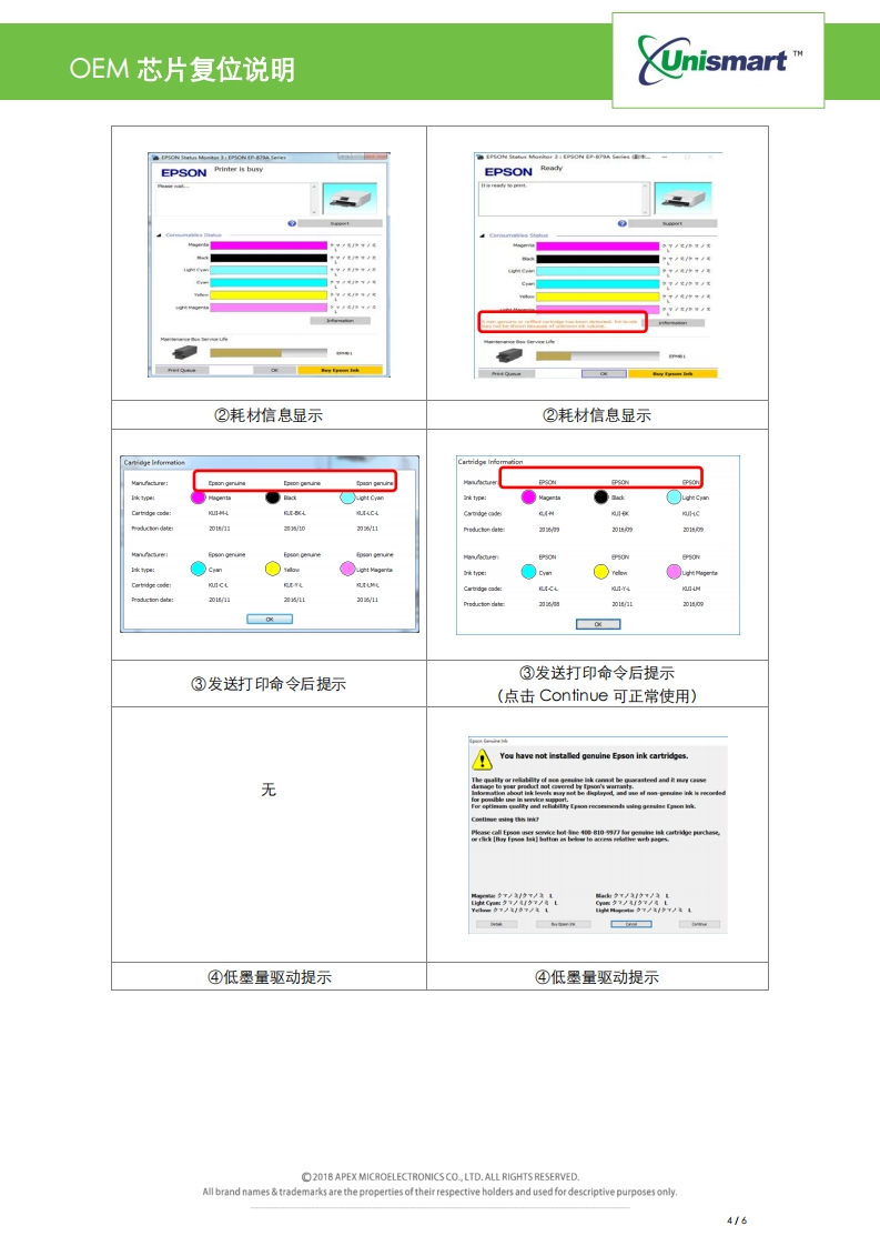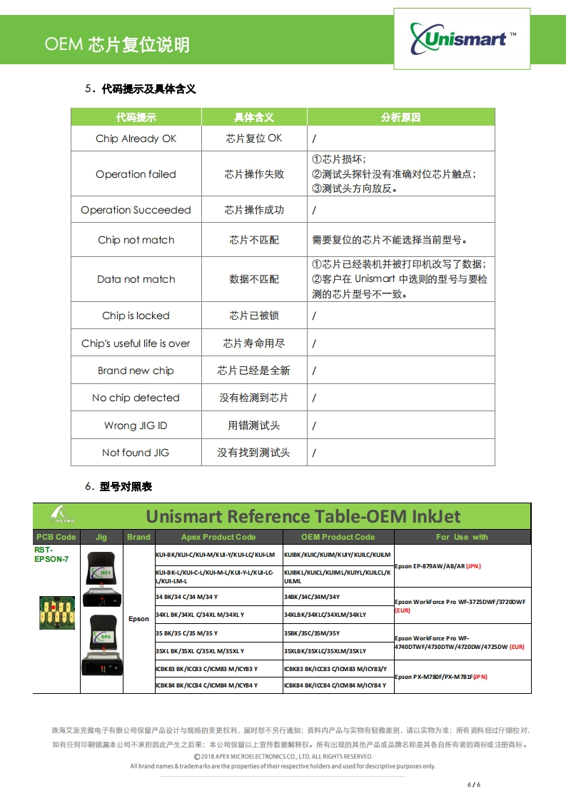 Unismart三代-EpsonVIIOEM芯片复位说明20171012找手册网30天前发布关注私信0.85MB6页031Unismart三代-EpsonVIIOEM芯片复位说明20171012此内容为付费资源,请付费后查看¥19¥21黄金会员免费钻石会员免费登录购买付费资源 第1页 / 共6页 第2页 / 共6页 第3页 / 共6页 第4页 / 共6页 第5页 / 共6页 第6页 / 共6页 已完成全部阅读,共6页 THE END爱普生 文本预览 OEM芯片复位说明CUnismartUni Epson VIl OEM芯片复位说明V1.1目录1.复位技术特征…22.Epson V川芯片曼盒与对应的读写头..23.设备操作.24.复位注意事项…35.代码提示及具体含义…66.型号对照表…6 查看更多 收起部分 喜欢就支持一下吧收藏