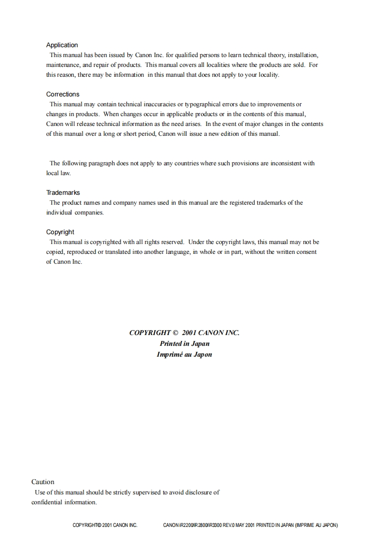 Canon-iR2200-iR2800-iR3300-维修手册-handbook找手册网30天前发布关注私信3.30MB352页043Canon-iR2200-iR2800-iR3300-维修手册-handbook此内容为付费资源,请付费后查看¥19¥21黄金会员免费钻石会员免费登录购买付费资源 第1页 / 共352页 第2页 / 共352页 第3页 / 共352页 第4页 / 共352页 第5页 / 共352页 第6页 / 共352页 第7页 / 共352页 第8页 / 共352页 第9页 / 共352页 第10页 / 共352页 试读已结束,还剩342页,您可下载完整版后进行离线阅读 THE END佳能 文本预览 iR2200/iR2800/iR3300SERVICEHANDBOOKREVISION 0CanonMAY 2001FY8-23BD-000COPYRIGHTO 2001 CANON INC.CANON IR2200MR2800/R3300 REVO MAY 2001 PRINTED IN JAPAN (IMPRIME AU JAPON) 查看更多 收起部分 喜欢就支持一下吧收藏