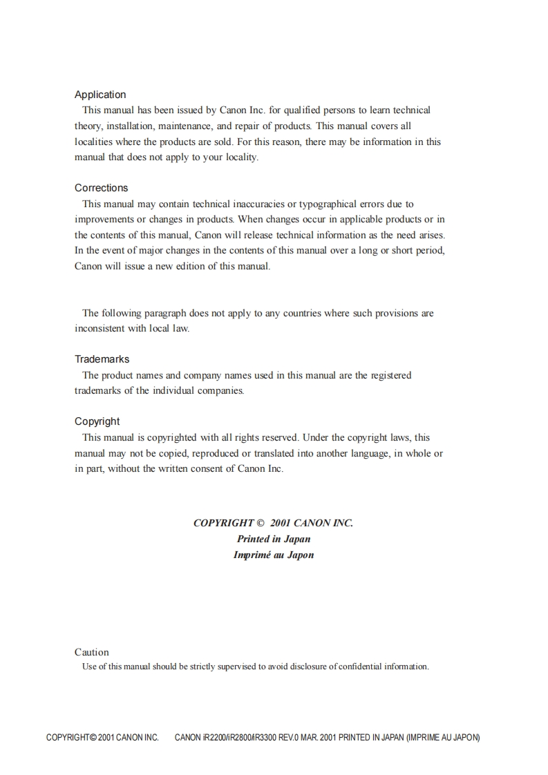 Canon-iR2200-iR2800-iR3300-维修维护手册找手册网30天前发布关注私信6.48MB768页032Canon-iR2200-iR2800-iR3300-维修维护手册此内容为付费资源,请付费后查看¥19¥21黄金会员免费钻石会员免费登录购买付费资源 第1页 / 共768页 第2页 / 共768页 第3页 / 共768页 第4页 / 共768页 第5页 / 共768页 第6页 / 共768页 第7页 / 共768页 第8页 / 共768页 第9页 / 共768页 第10页 / 共768页 试读已结束,还剩758页,您可下载完整版后进行离线阅读 THE END佳能 文本预览 iR2200/iR2800/iR3300SERVICEMANUALREVISION 0CanonMAR.2001FY8-13H8-000COPYRIGHT 2001 CANON INC.CANON iR2200/R2800/R3300 REV.0 MAR.2001 PRINTED IN JAPAN(IMPRIME AU JAPON) 查看更多 收起部分 喜欢就支持一下吧收藏