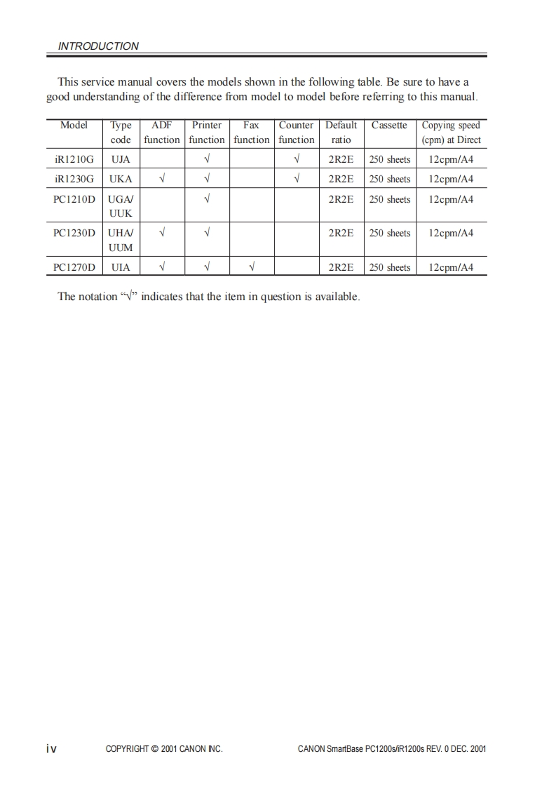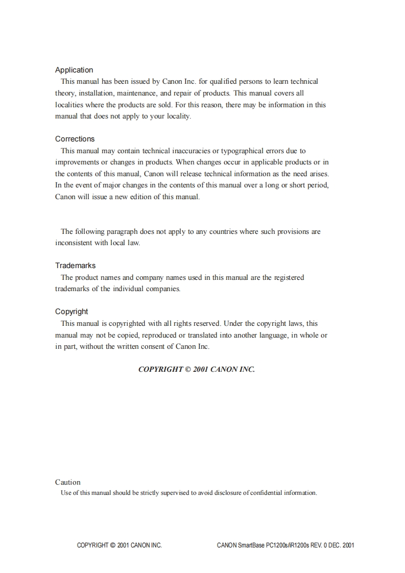 Canon-SmartBase-PC1200s-iR1200s-维修维护手册找手册网30天前发布关注私信4.38MB400页045Canon-SmartBase-PC1200s-iR1200s-维修维护手册此内容为付费资源,请付费后查看¥19¥21黄金会员免费钻石会员免费登录购买付费资源 第1页 / 共400页 第2页 / 共400页 第3页 / 共400页 第4页 / 共400页 第5页 / 共400页 第6页 / 共400页 第7页 / 共400页 第8页 / 共400页 第9页 / 共400页 第10页 / 共400页 试读已结束,还剩390页,您可下载完整版后进行离线阅读 THE END佳能 文本预览 SmartBase PC1200s/iR1200sSERVICEMANUALREVISION 0CamonDEC.2001HY8-10AU-000COPYRIGHT 2001 CANON INC.CANON SmartBase PC1200s/R1200s REV.0 DEC.2001 查看更多 收起部分 喜欢就支持一下吧收藏