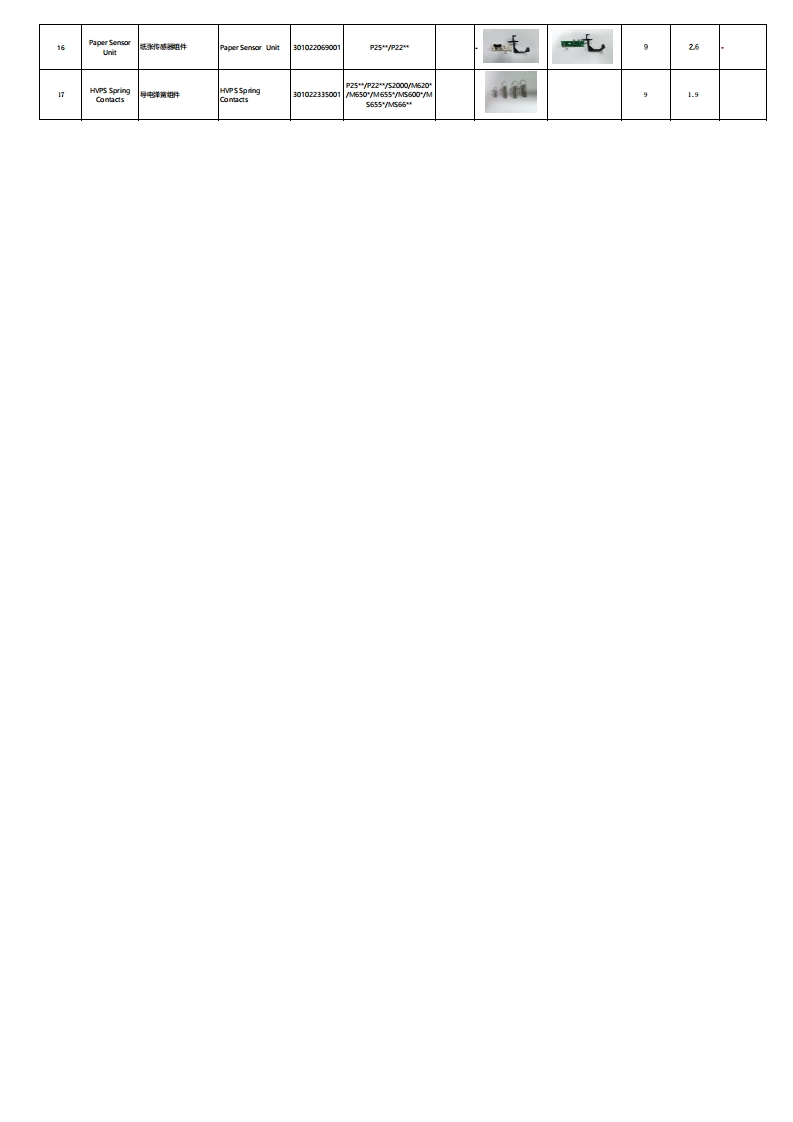 Pantum P2200/P2500 Series Spare Part ListVersion:20220427Printer Explosion Mapbrive-Sear家dNo.MinimunName ofUnit5 pare PartmeSAP PartPhoto2OrderNet(English)Num ber(represents anynumbors)(Pieces perWeight(g)Remarkbox)1Fuser定翅件220WFuser Unit.220V301022090001P25"/P22"M650'/M5551812.5Paper feed trayPlase进件01022349001bladg)P25“/P2287.1ch oose进先盘浅灰组件Paper feod tray ightg301022593001P25/P22187.13光器aser Scanning Unit0102205500P25"/P22"M650/M55512278Laser Unit30102233200P25"/P22"M550'/M5543始现地件Pidup Assembly301022050001P25/P22"M550/M5559.0PaperFeed双球地轮地件Paper Feed Cutch01022054001P25"/P22"M650/M555dutch910.8701022055001P25"/P22"AM650*/M5551251.08Transfer Unit分衡片想件epamor Pad0102205200P25"/P22“M550/555419始Pdpp四prol02110031901P25"/P22"M550/M555129510OPC望动地轮OPC Drive Goar01022071001P25"/P22"M650'/M5559103Drive Unit11定烧动出轮P25"P22"M550/555user Unit Drhe Gex0102207300114512马达30102205700P25"/P22AM550/M555213.0Power Board电模220)Power Supply Board301022741001P25“/P222535According toUnit220MArea VoltageData board37Data board37Dat board301022537001P2500397Data board301022205001p2500W458黄是板Data board302110013201P2500Nw4584581700Data board-170030211003.7Du board302110010201P250214Data BoardData board302110010301P2502w班妆270可Data board-27003021110223401P2500NwM-200397货盛板2700Data board-2700302111023301P2500-2700397盛妆2700397座表27003021110235075052700A3.7Dat board-27001400at board-2700270Dut也b01rd-2700302111024701P2502-27004397数盛数1700Data board-1700302110012101P25181700430T15Left Meta Plate0102005100P25"/P22"M550/M55526.5