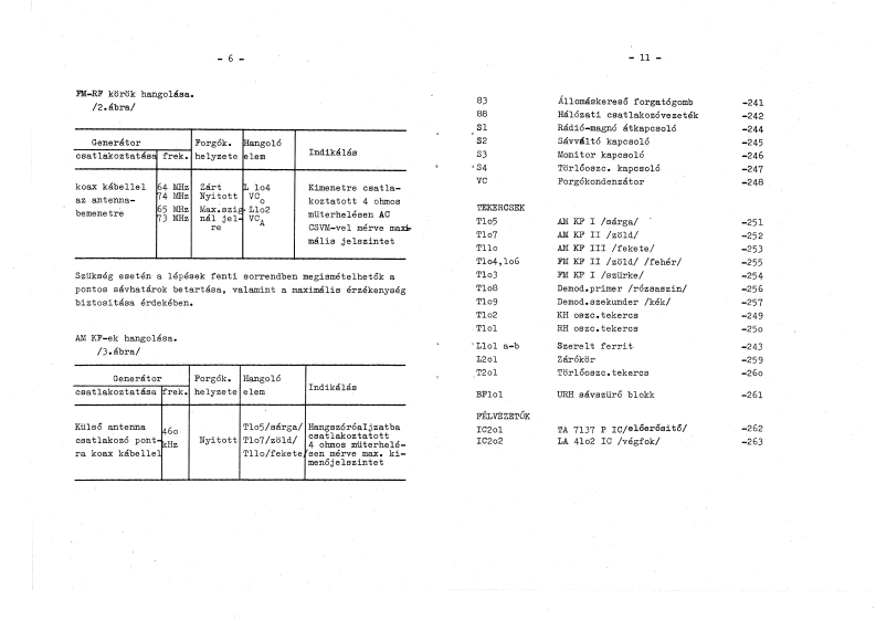 MODELAJ-350AKAIKH,RH,URH savos radi6beepitett kazettas magnovalAMOVILLKeziratkent sokszorositva a RAMOVILL Szervizhal6zatreszere,belso hasznalatra1.64Usszeallitotta:Dudis Arpad,Ellenrizte:Daniel J6zsef1979.MUSZAKI ADATOK·*Radi6egwBég·Hullamsavok535-16o5kHzKH /MW/4,7-12MHzRH /SW/64-74日zURH /FM/rzékenysegKH o,85 mV/mferritr6lRH o,6 mV/mURH 5 uVantennar6lA megadott eezekenysegi adatok 26 dB jel/zaj viszonyra vonat-koznak。Kozepfrekvencia460 kHz AM savok1o,7Hz-FM8ávSzelektivitasAM-en 22 dB-nel jobb 1 MHz-en±9kHz e1 hango1asna1PM-en 2o dB-nel jobb 69 MHz-ent300 kHz elhangolasnalPrekvenciaatvitel/elektroakusztikus/AM-en1o0.·····.3000HzFM-en30.··….15000HzAntennakAM savokon beepitett ferritantennaés kuls6 antennacsatlakoztat.ágilehetoseg.