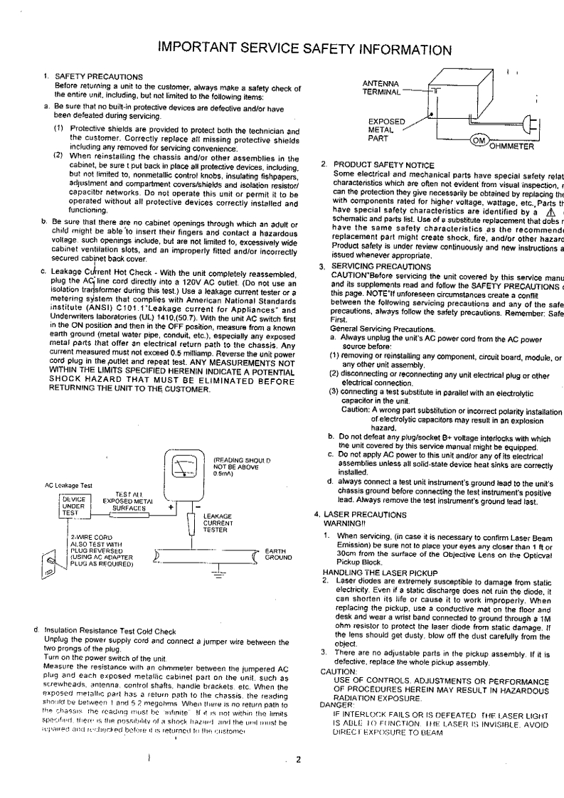 AKAIMODELSERVICE MANUALAJ-C2500CAUTION:Before servicing the chassis,read the "Important Service safety Information"section on page 2 of this manual.PORTABLE MW/FM/LW RADIO WITH CASSETTE RECORDERSPECIFICATIONSCONTENTSAM/FM TUNER SECTIONAM:FERRITE BARANTENNA SYSTEMFM:TELESCOPICIMPORTANT SERVICE SAFETY INFORMATION-2DISASSEMBLY INSTRUCTIONS-·---=--·3TUNING RANGEAM:515~1650KHzFM:87.35-108.25MHzALIGNMENT PROCEDURES --------4-5INTERMEDIATE FREQUENCY AM:465KHz +/-1KHzADJUSTMENT LOCATIONS6FM:10.7MHz +0.1MHzIC BLOCK DIAGRAM -----…712AUDIO SECTIONBLOCK DIAGRAM-----13SPEAKER IMPEDANCE8 ohmWIRING DIAGRAM --14GENERAL14WPRINTED CIRCUIT BOARDS -------15-24POWER INPUTAC 230V,50Hz DC 12VSCHEMATIC DIAGRAMS ---------25-29DIMENSIONS497(W0X234(H)X287(D)mmEXPLODED VIEW ---30EXPLODED VIEW PARTS LIST---------31REPLACEMENT PARTS LIST--------32-38SERVICE PUBLICATION