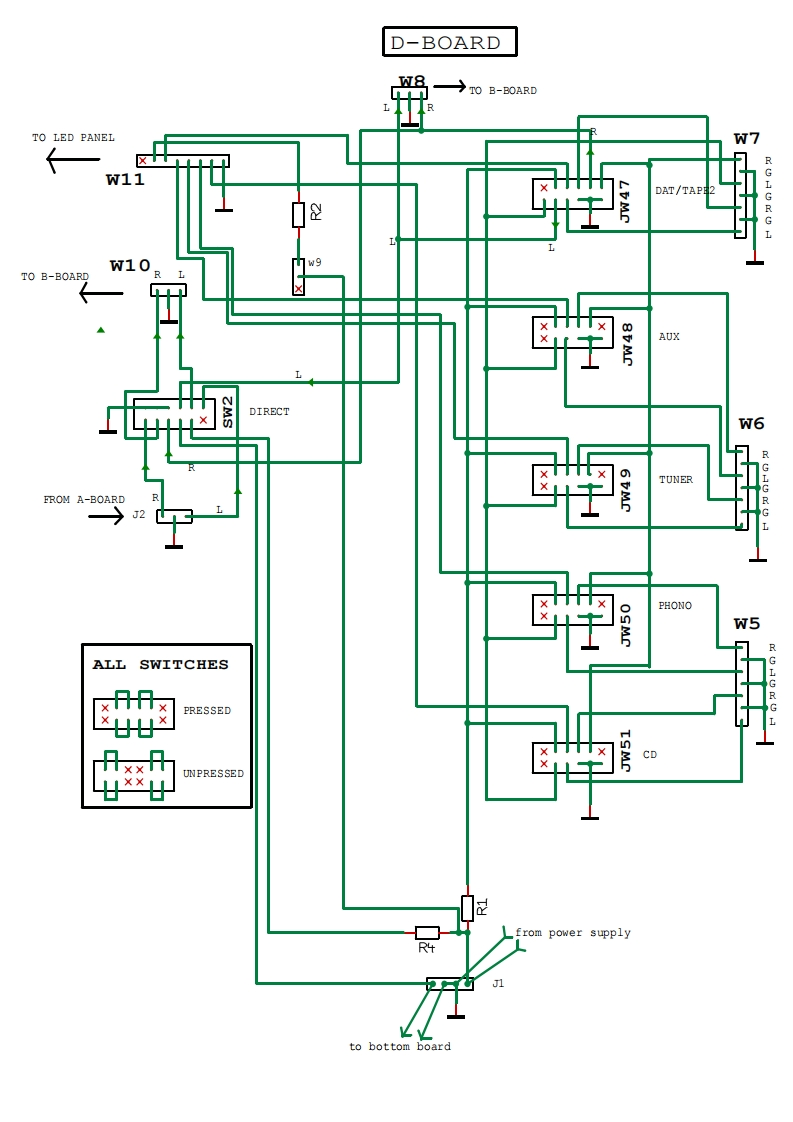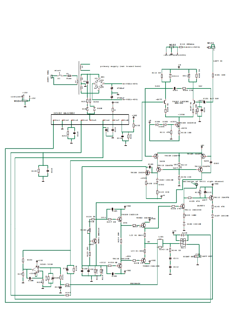 AKAI AM-32 (60W-channel)IMPORTANT this is not the original AKAI AM-32 schematic.I have copied this scheme,following the traces and solders of PCB board of the amplifier,when i repaired it.I don't guarantee that the whole scheme is exact and my instrument is not very precise,then IF YOU USE IT,YOU DOIT TOYOUR RISK.Also,the schematic is not complete,but include the following circuits:-left channel final amplifier(note that the right channel has the same component's name of left channelfinal power supply·safety circuitswitch board (D board)some components dataDo not include primary power supplyTraced by MPANTEC,with TARGET3001 FOR PCB POOL,
