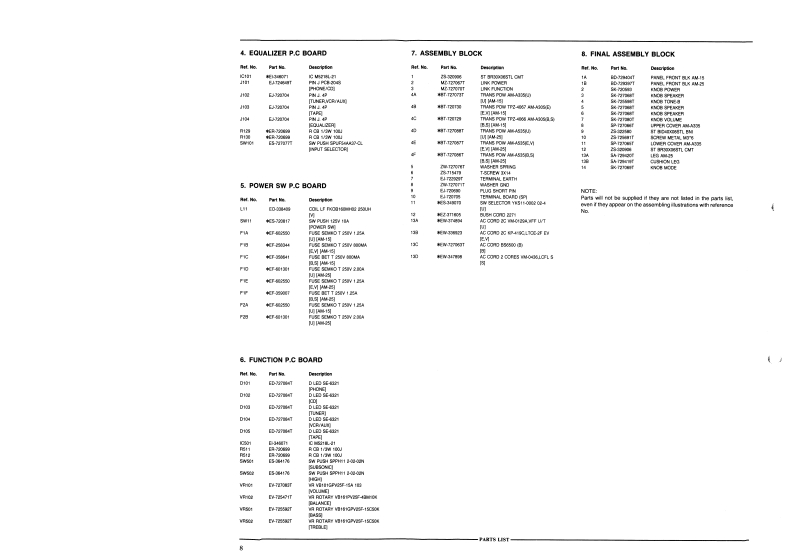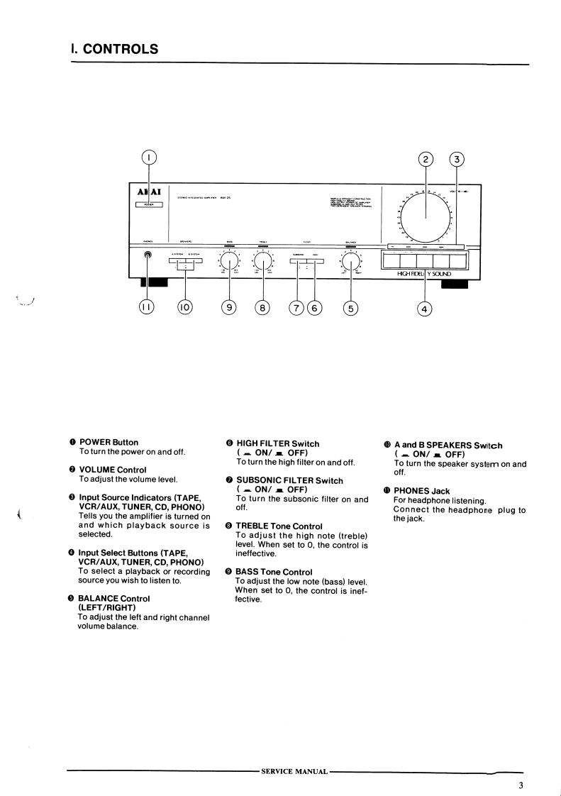 AM-15AM-2AKAI SERVICE mANUALAKAI☐巴品HIGH FIDEUTY SOUNDSTEREO INTEGRATED AMPLIFIERMODELAM-15MODELAM-25SPECIFICATIONSPower output(DIN 1 kHz)FiltersAM-1535W+35WHigh...7 kHz,-6 dB/octAM-25…60W+60wSubsonic18Hz,-6 dB/octMusic power outputPower requirements .........220V,50 Hz for Europe exceptAM-15160wUK.AM-25.270w240V,50 Hz for UK andS/N(IHF-A)AustraliaPhono (MM)...............75 dB110V/120V/220V/240V.Tuner etc........100dB50/60 Hz convertible for otherResidual noise .................0.4 mVcountries.Channel separationDimensions....425(w)×130(H)×270(D)mm(1kHz).(16.7×5.1×10.6 inches)60 dBWeightDamping factor(1kHz,8 ohms)............35AM-15.…8.0kg(17.61bs)AM-25Required speaker impedance…9.0kg(19.81b5)A or B..4ohms【0160hmsA and B......................8 ohms to 16 ohmsInput sensitivity/ImpedancePhono (MM)................3 mV/47 kohmsTuner,etc .........150 mV/47 kohmsPhono max.input level(1kHz).100mVStandard accessoriesOperator's manualFor improvement purposes,specifications and design are subject to change without notice.