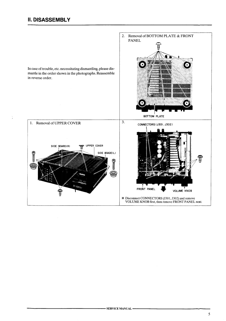 AKAI SERVICE MANUALAKAIDIGITALDIGITAL INTEGRATED AMPLIFIERMODEL AM-93SPECIFICATIONSPower output..aaa…180 W+180 W (DIN.4 ohms)Channel separation.…60 dB130 W+130 W (FTC,8 ohms)Audio mute…-20dBPower band width.......10 Hz to 60 kHz/0.1%Required speaker impedanceTotal harmonicAorB…4to16ohmsdistortion.....008%(1 kHz,8 ohms)A and B.…8 to 16ohmsPhone max.inputSampling frequency.....32 kHz/44.1 kHz/48 kHzlevel…200 mV (MM)Digital filter.....8 fs,18 bitFrequency response....3 Hz to 100 kHz(+0 dB,-3 dB)D/A converter............16 bit,2 DACTone controlDigital input level/ImpedanceTREBLE.士10dB(10kHz)COAXIAL...........0.5 Vp-p/75 ohmsBASS.…±10dB(100Hz)OPTICAL............-14 to-23 dBmInput sensitivity/ImpedanceFrequency response.....5 Hz to 20 kHz (+0.3 dB)PHONO(MM).....2.5 mV/47 kohmsDynamic range....95 dBPHONO (MC).......0.25 mV/100 ohmsTotal harmonicTUNER,etc.........150 mV/47 kohmsdistortion.…0.003%Output level/ImpedanceChannel separation......115 dBTAPE REC OUT....150 mV/1 kohmsDimensions..461(WM×177(H×452(D)mDamping factor.…30(1kHz)Weight................20kg (44 Ibs)Residual noise............0.5 mVS/NPHONO (MM)......85 dBPHONO(MC)......67dBStandard accessoriesTUNER,etc...100 dBOperator's manual*For improvement purposes,specifications and design are subject to change without notice.