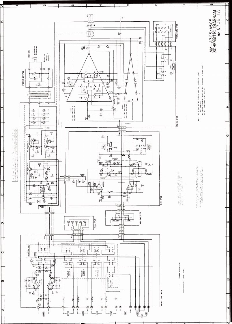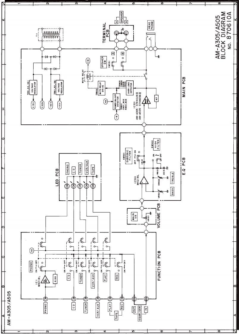 Ned.Ver.v.Historie v/d FAKAIARCHIEFDOCUMENTATIEDIENSTNVHRMODELAM-A305/A505SCHEMATIC DIAGRAMAND PC BOARDSTABLE OF CONTENTS1.LED PCB,TERMINAL PCB,AND VOLUME PCB......12.EQ PCB,FUNCTION PCB,MAIN PCB,AND POWER PCB....................23.SCHEMATIC DIAGRAM…34.BLOCK DIAGRAM4
