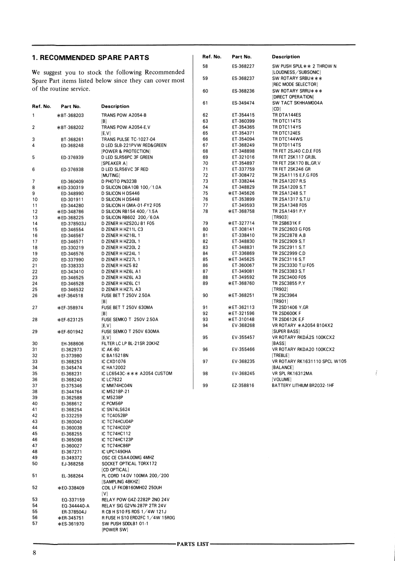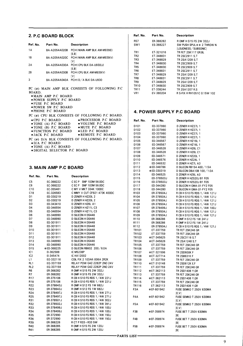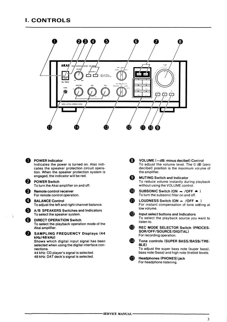 AM-M93AKAI SERVICE MANUAL②AKAIeDIGITAL INTEGRATED AMPLIFIERMODEL AM-M939SPECIFICATIONSPower outputS/NBy FTC,,,,,······80w +80W/6 ohmsPHONO(MM0·······8.5dBBy DIN (1 kHz).......80W +80W/6 ohmsTUNER ete...........100 dBPower bandwidth........10 Hz to 60 kHz/0.1%Channel separation.......60dBTotal harmonic distortion...0.008%(1 kHz,8 ohms)Audio mute...........20 dBPHONO max.input level...250 mV (MM)Required speaker impedanceFrequency responseAorB...........··6to16ohmsPHON0,,,,,,,,,,..t02dBA+B,,,。,,,,.12to16ohmsCD Direct..····,·,·。5Hzto100kHzD/A sectionTone controlDigital input level/Impedance.0.5 Vp-p/75 ohmsTreble.,tl0dBFrequency response·..·.5Hzto20kHz±3dBBass±10dBDynamic range.........95 dBSuper bass,·······-+10dBTotal harmonic distortion...0.003%Input sensitivity/ImpedanceChannel separation.·.·.··90 dB (1 kHz)PHONO (MM)·····,.,2.5mV/47 kohmsPower requirements......220 V,50 Hz for EuropeTUNER etc...........150 mV/47 kohmsexcept UKOutput level/Impedance240V,50Hz for UKTAPE REC OUT.......150 mV/47 kohmsDimensions385(W)×139(×330(DmmDamping factor.........30(1 kHz)(15,2×5.5×13.0 inches)Residual noise,,,,0.5mVWeight·······10.3kg(22.7bs)For improvement purposes,specifications and design are subject to change without notice.