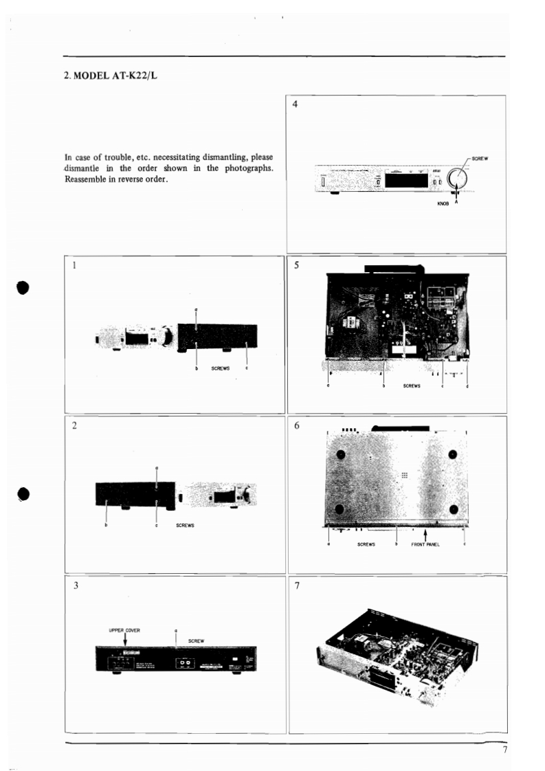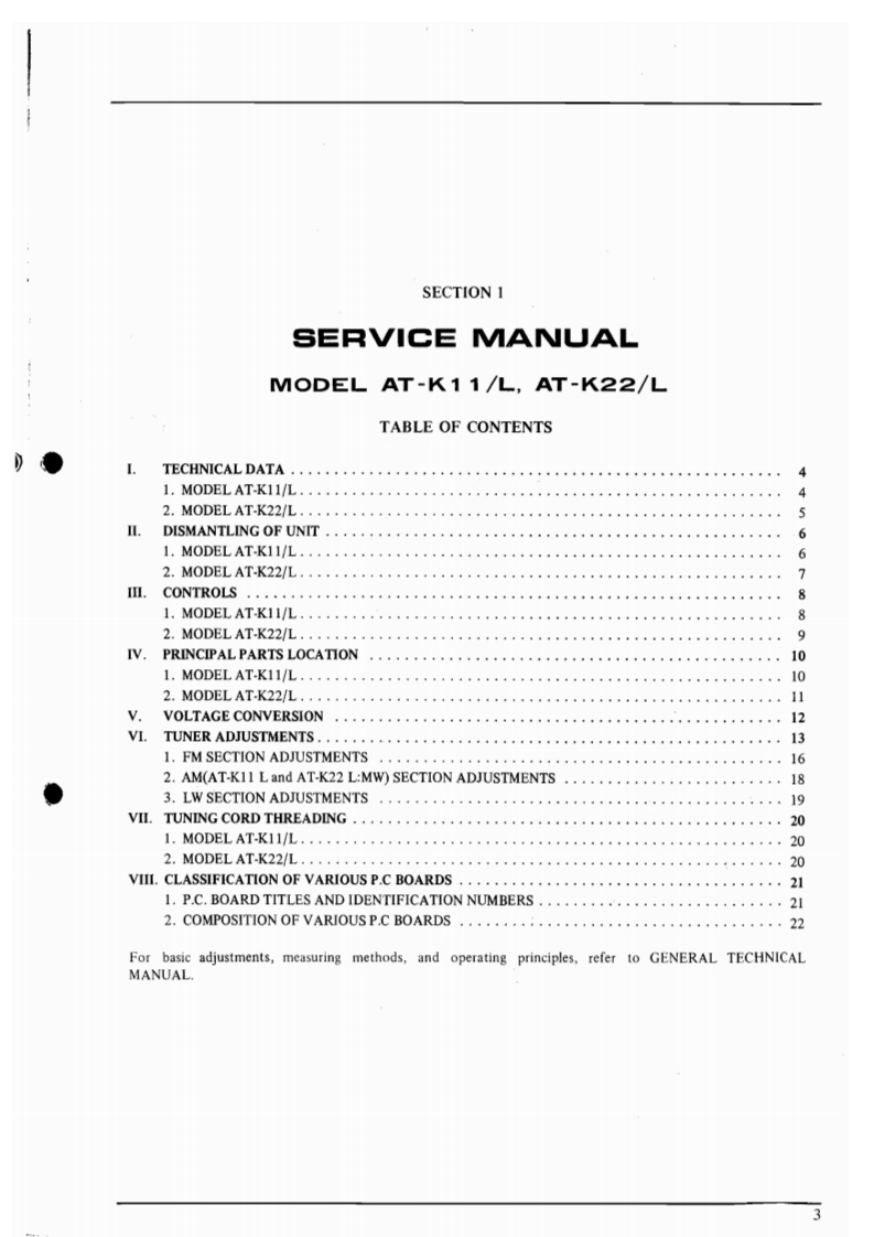 AT-K11/LAT-K22/L162imAM-U11Bwiii◆AM-U22FM AM STEREO TUNERAT-K11/LMODELAT-K22/LSTEREO INTEGRATED AMPLIFIERAM-U11MODELAM-U22TIHS MANUAL IS APPLIGABLE TO BOTH SILVER AND BLACK PANEL MODELSSECTION 1MODEL AT-K11/L and AT-K22/L SERVICE MANUAL...........3SECTION 2MODEL AM-U1I and AM-U22 SERVICE MANUAL..............27SECTION 3 PARTS LIST............................................47SECTION 4 SCHEMATIC DIAGRAM...................73