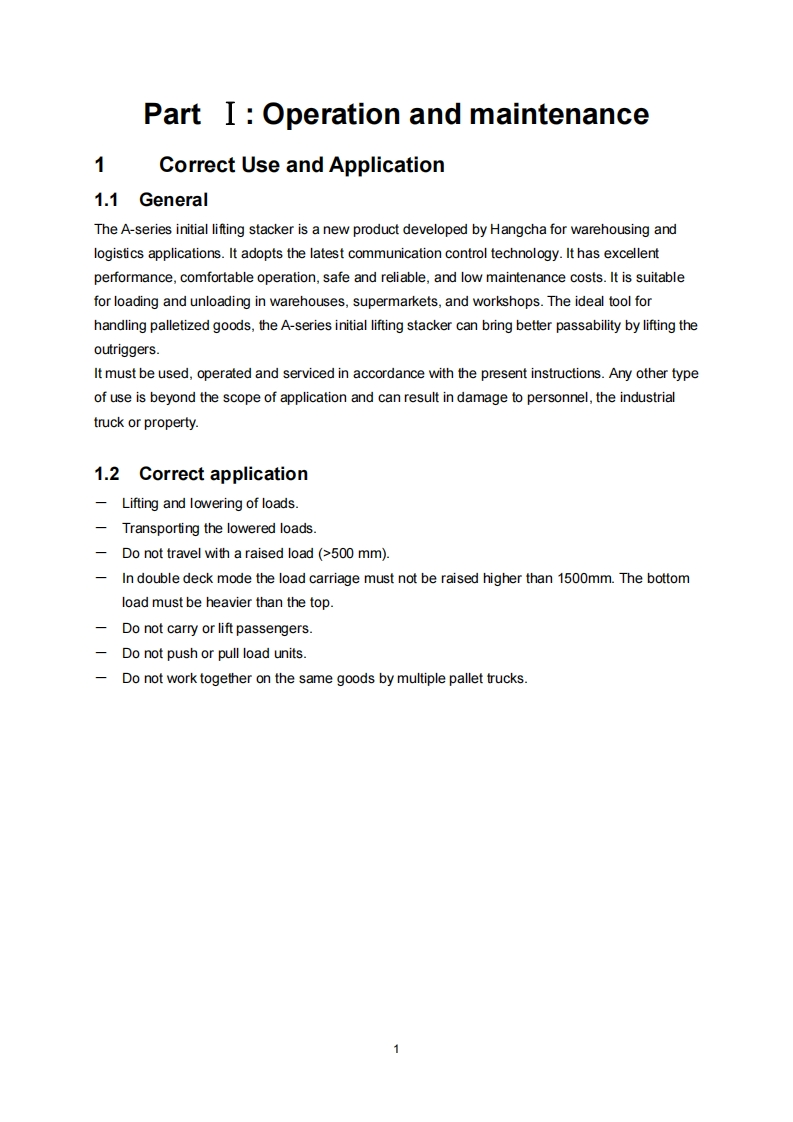 杭州叉车EN_CDD1_2_1_6-OPERATION-AND-MAINTENANCE-MANUAL操作与维修维护手册找手册网10小时前发布关注私信11.40MB112页041杭州叉车EN_CDD1_2_1_6-OPERATION-AND-MAINTENANCE-MANUAL操作与维修维护手册此内容为付费资源,请付费后查看¥29¥31黄金会员免费钻石会员免费立即购买您当前未登录!建议登陆后购买,可保存购买订单付费资源 第1页 / 共112页 第2页 / 共112页 第3页 / 共112页 第4页 / 共112页 第5页 / 共112页 第6页 / 共112页 第7页 / 共112页 第8页 / 共112页 第9页 / 共112页 第10页 / 共112页 试读已结束,还剩102页,您可下载完整版后进行离线阅读 THE END杭州叉车 文本预览 IC>HANGCHAASeriesInitial lifting pallet stackerCDD12/14/16-AC1-LCDD12/14/16-AC1-LICDD12/14/16-AZ3-LCDD12/14/16-AZ3-LICDD12/14/16-AC2-LCDD12/14/16-AC2-LIOPERATION AND MAINTENANCE MANUALOriginal InstructionHANGCHA GROUP CO.,LTD.11/2022 查看更多 收起部分 喜欢就支持一下吧收藏