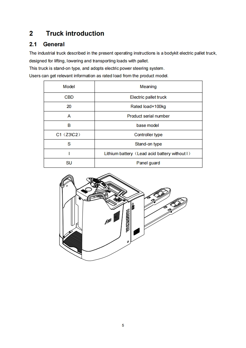 ASeriesELECTRIC PALLET TRUCKCBD20/30-AC1S-SUCBD20/30-ABC1S-SUCBD20/30-AZ3S-SUCBD20/30-ABZ3S-SUCBD20/30-AC1S-ISUCBD20/30-ABC1S-ISUCBD20/30-AC2S-SUCBD20/30-ABC2S-SUCBD20/30-AC2S-ISUCBD20/30-ABC2S-ISUOPERATION AND MAINTENANCEMANUAL(€Original InstructionHANGCHA GROUP CO.,LTD.5/2022