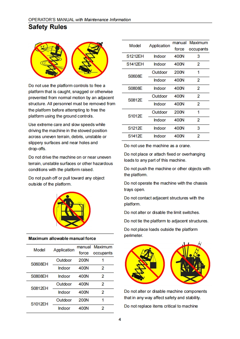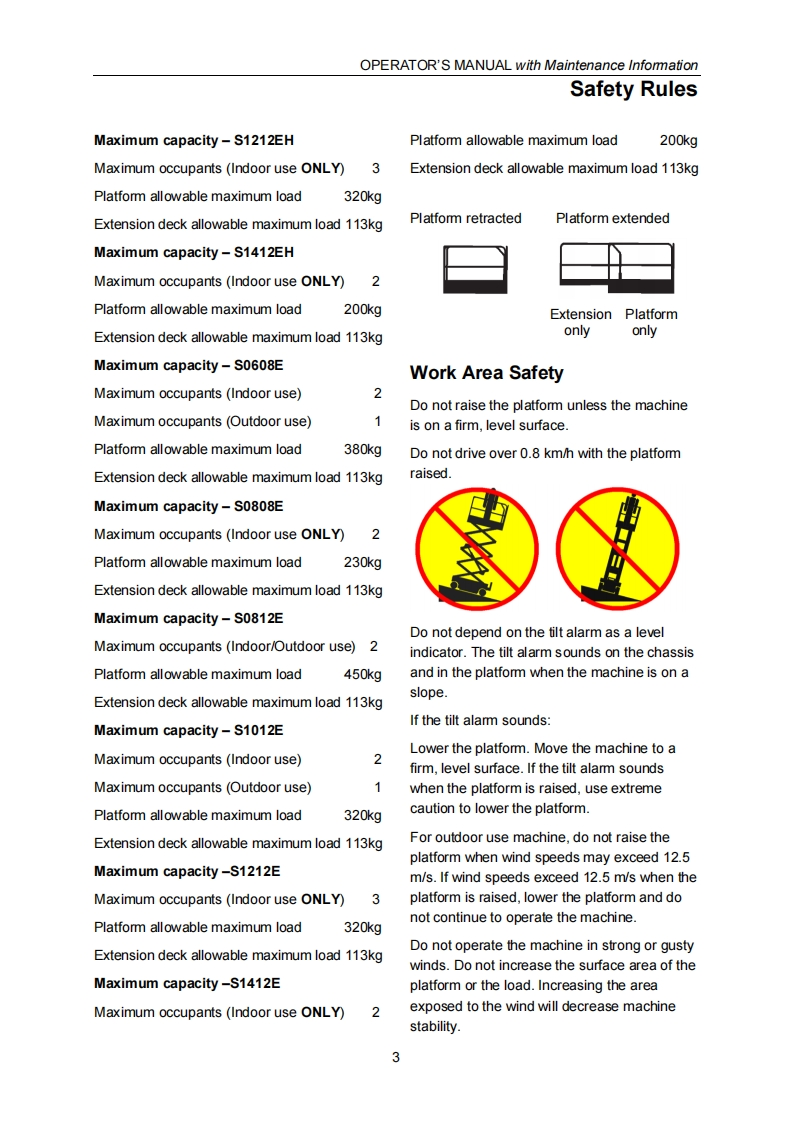 SELF-PROPELLED SCISSOR LIFTSOPERATOR'S MANUALwith Maintenance InformationFor S0608EH,S0808EH,S0812EH,S1012EH,S1212EH,S1412EH(ForS0608E,S0808E,S0812E,S1012E,S1212E,S1412E)Hydraulic Motor DC Motor Drive(Series 3)mWARNINGTHE MANUFACTURER SHALL NOT BE HELD LIABLE IN CASE OF FAULTSOR ACCIDENTS DUE TO NEGLIGENCE,INCAPACITY,INSTALLATIONBYUNQUALIFIED TECHNICIANS AND IMPROPERUSE OF THE MACHINEDO NOT OPERATE THIS MACHINE UNTIL YOUREAD ANDUNDERSTANDALL THE DANGERS,WARNINGS AND CAUTIONS IN THIS MANUALPart Number:SM0110111ACEZhejiang Dingli Machinery Co.,LtdSecondEdition,Jun 2015 Printing