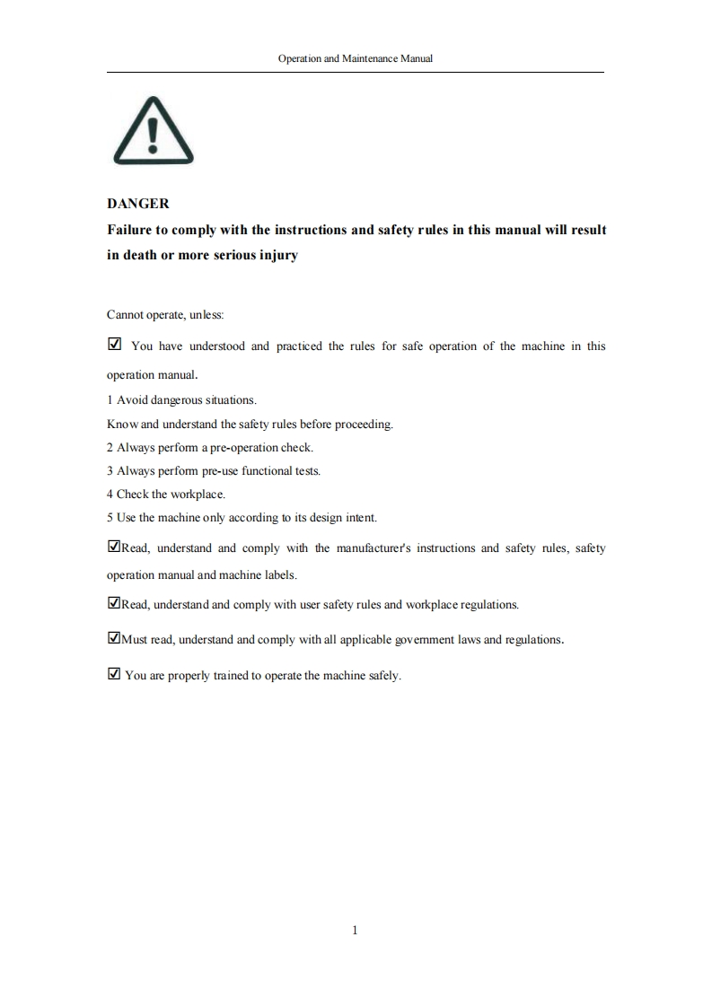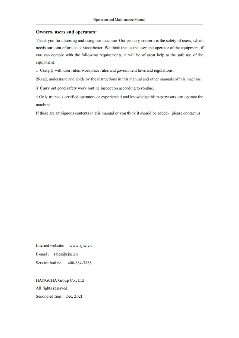 杭州叉车EN_Vertical-Mast-A-Lift-HV110D_OPERATION-AND-MAINTENANCE-MANUAL操作与维修维护手册找手册网10小时前发布关注私信1.83MB65页037杭州叉车EN_Vertical-Mast-A-Lift-HV110D_OPERATION-AND-MAINTENANCE-MANUAL操作与维修维护手册此内容为付费资源,请付费后查看¥29¥31黄金会员免费钻石会员免费立即购买您当前未登录!建议登陆后购买,可保存购买订单付费资源 第1页 / 共65页 第2页 / 共65页 第3页 / 共65页 第4页 / 共65页 第5页 / 共65页 第6页 / 共65页 第7页 / 共65页 第8页 / 共65页 第9页 / 共65页 第10页 / 共65页 试读已结束,还剩55页,您可下载完整版后进行离线阅读 THE END杭州叉车 文本预览 OPERATION AND MAINTENANCEMANUALHV110DVertical Mast A LiftHANGCHA GROUP CO.LTD 查看更多 收起部分 喜欢就支持一下吧收藏