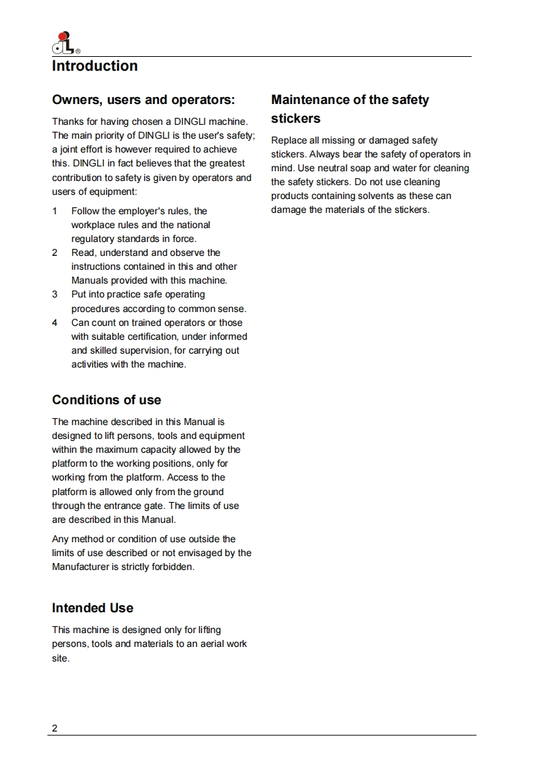 Dingli-BT24-RT-Operations-Manual操作与维护保养说明书手册找手册网10小时前发布关注私信10.21MB91页024Dingli-BT24-RT-Operations-Manual操作与维护保养说明书手册此内容为付费资源,请付费后查看¥29¥31黄金会员免费钻石会员免费立即购买您当前未登录!建议登陆后购买,可保存购买订单付费资源 第1页 / 共91页 第2页 / 共91页 第3页 / 共91页 第4页 / 共91页 第5页 / 共91页 第6页 / 共91页 第7页 / 共91页 第8页 / 共91页 第9页 / 共91页 第10页 / 共91页 试读已结束,还剩81页,您可下载完整版后进行离线阅读 THE END鼎力 文本预览 Operation MaintenanceManualSelf-PropelledTelescopic Boom LiftsBT30RTBT28RTBT26RT830R1BT26SRTBT24RTitSMSMachineryRev2.1,Second Edition,November 2020 查看更多 收起部分 喜欢就支持一下吧收藏