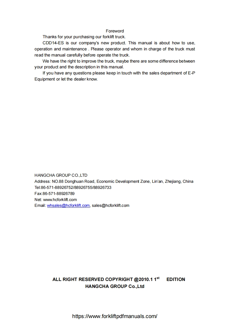 杭州叉车Hangcha-CDD14-16-Pallet-Stacker-Operators-Manual-PDF操作说明书手册找手册网10小时前发布关注私信0.44MB35页034杭州叉车Hangcha-CDD14-16-Pallet-Stacker-Operators-Manual-PDF操作说明书手册此内容为付费资源,请付费后查看¥29¥31黄金会员免费钻石会员免费立即购买您当前未登录!建议登陆后购买,可保存购买订单付费资源 第1页 / 共35页 第2页 / 共35页 第3页 / 共35页 第4页 / 共35页 第5页 / 共35页 第6页 / 共35页 第7页 / 共35页 第8页 / 共35页 第9页 / 共35页 第10页 / 共35页 试读已结束,还剩25页,您可下载完整版后进行离线阅读 THE END杭州叉车 文本预览 CDD14-ES CDD16-ESSTAND-ON PALLET STACKEROPERATION MANUALHANGCHA GROUP CO..LTDhttps://www.forkliftpdfmanuals.com/ 查看更多 收起部分 喜欢就支持一下吧收藏