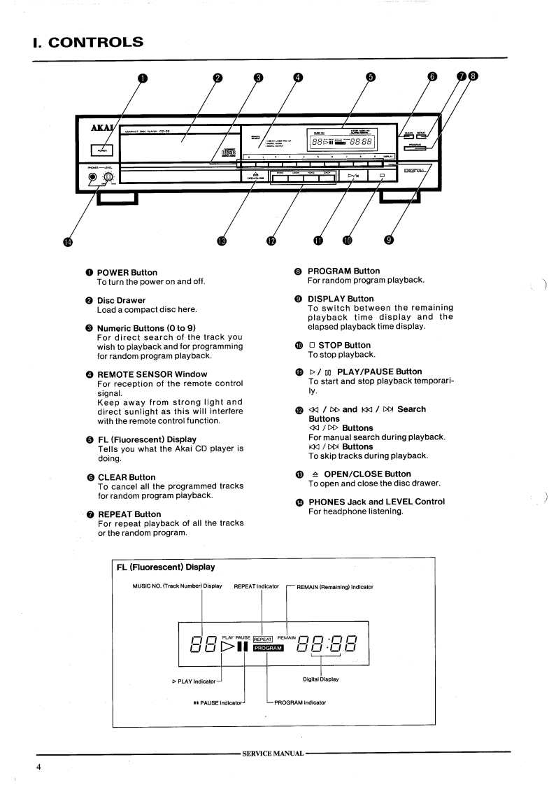 AKAI SERVICE MAnUALAKAI当当说88t8888哑COMPACT DISC PLAYERMODELCD-32d5起DIGITAL AUDIOSPECIFICATIONSSystem...................................Compact disc playerPick-up system.…3 beam Laser pick upSampling frequency ......................44.1 kHzDigital filter.…16 bit,2 times over samplingD/A converter ...........................16 bit linearError correction system ..................Cross Interleave Reed SolomonNumber of channels.......................2 channels(Stereo)Frequency response.......................5Hzto20kHz±0.5dBDynamic range............................90 dB or moreS/N…98 dB or moreTotal harmonic distortion...............0.005%or lessWow Flutter............................Less than measurable limitsAnalogue output level..........2V(0 dB)Digital output level/Impedance...........0.5 Vp-p/75 ohmsHeadphone output level/Impedance.......28 mW/32 ohmsPower requirements ......................120 V.60 Hz for USA and Canada220 V,50 Hz for Europe except UK240 V,50 Hz for UK and Australia110 V-120 V/220 V-240 V,50 Hz/60 Hz convertible for other countriesDimensions.............................425(W×98(H)×330(D)mm(16.7×3.9×13.0 inches)Weight..…4.3kg(9.5b)For improvement purposes,specifications and design are subject to change without notice.