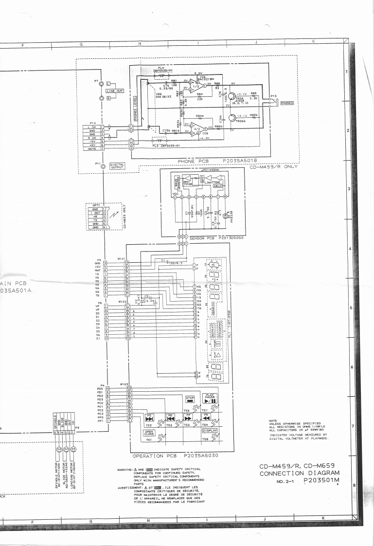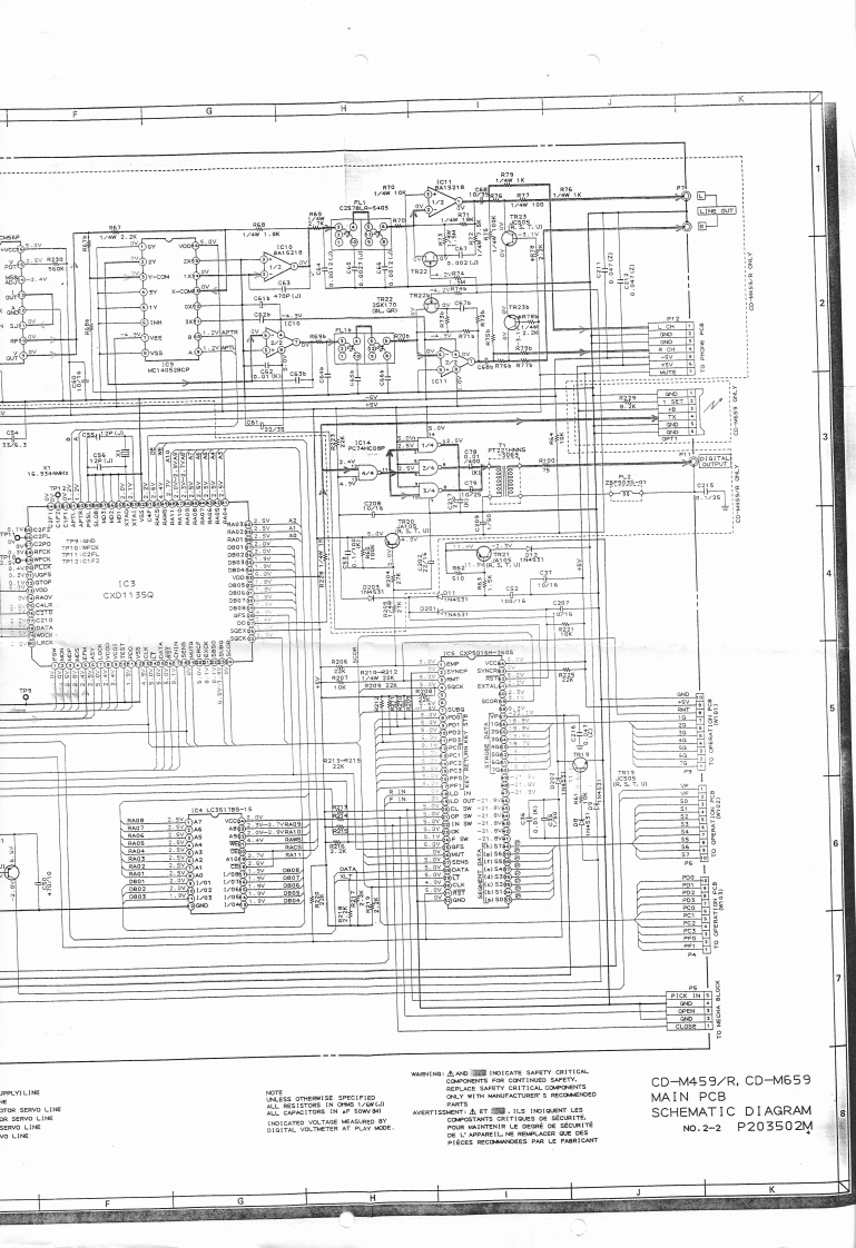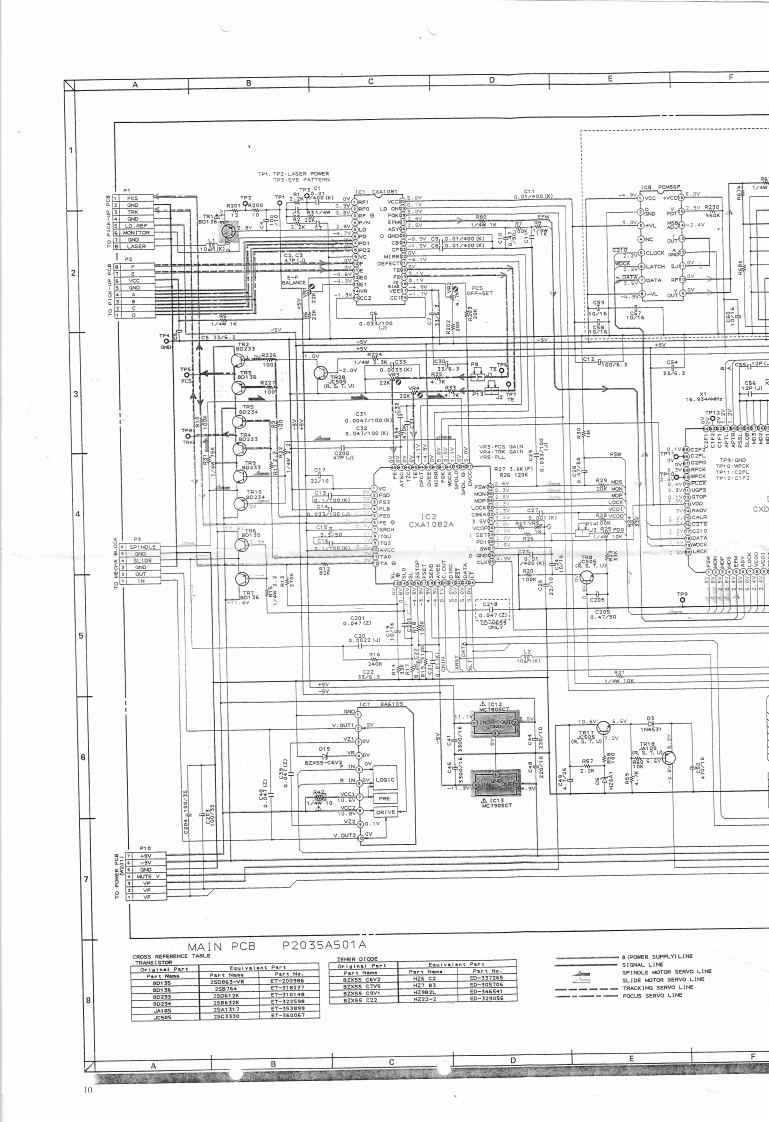 V.ELECTRICAL ADJUSTMENTABDIT THE TEST MODE2F0CLsD-s址TI.Tet Dic5AAT-7510万Tam on the power while shortin形Pn像④ad零t the carnecter P46mhc1.Test nede 2 and 0MAIN PCB.thea urit issel lo he TEST MODE.3.TP (FEL VR23E-F BALANCElnccrcoulse FONT PANELi0ES:0when TEST MODE4..Caaneet a Digita Voltneer beracen T [FE)and GND.Chock the woltage A.(Test mode 21L Tes Dise SA (AT-751330nFANEL.Press STOP buTon.Then odisit woitage B so that the woltage2.Tes mode 3.·When press the STOP ke与ec.TE5 TMOOE rumber senum o ns-d,3.TP (TE VRI·Cofrn Creaky nahd pickup8d工.*cm4.Connect an Oscilscope betveen TP(TE)andumh解e0n好g的n行D。A=B(DC RangeSTRACKING SERYO GAIX1.TeM Dec 5A (AT-513)土Dka野3.TP [TRK)VR4TPILO)圈4..Conseer an Osollsoope TP (TRK]ondGND.。00mV-L2Vp-pTEST MODE OPERATION.DISPLAYAND FUNCTIONTPILDIVR4OPERATION■DISPLAYFUXCTIONTRK GAINSTOP0ES-0LASER OFFALL SERVOOFF®E51ELASER ON全品把awFS+2E5-2FOCUS SERVO ON123E5-3SPINDLE MOTOR ONVR 5AUDIO MUTE OT1004E5-4我ACKINO SE0ONSLIDE SERVO ONWFCKO-Power ON3.TP (WFCK)VR50P1413(WFCK]and GND.Dooutree ashort connactorP4FOCUS SERYO GAIN·T35分410女G40L.TalD元c5AtaT.Js330nont2.Duc山界3.TP IFCSI VR34.*Conteet an Oscilscope berween TP [FS)and10V 1.4Vp-p2.ModeADI✉1G53.Test Point Adi.Port1→MAIN PCBNE度CE MANUAL0
