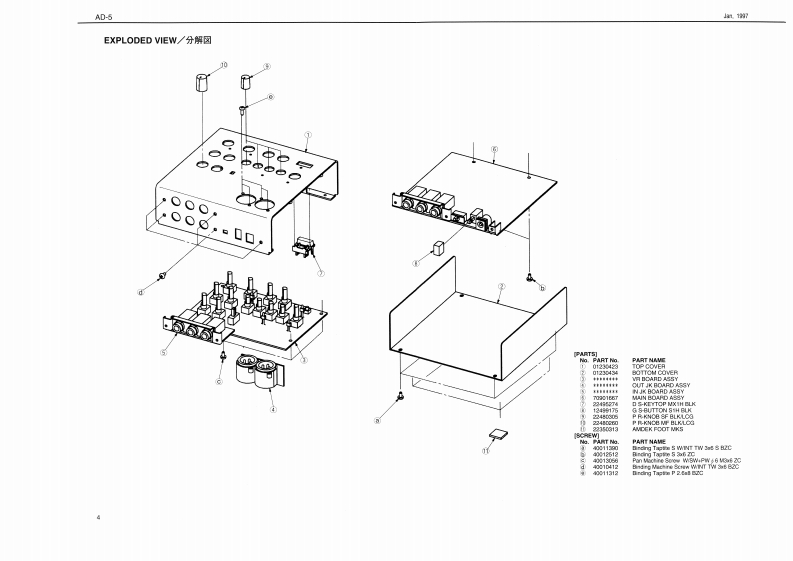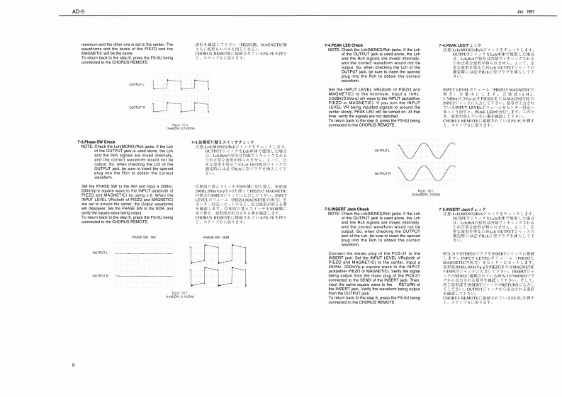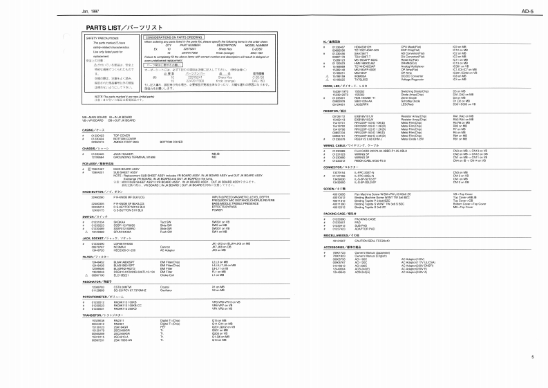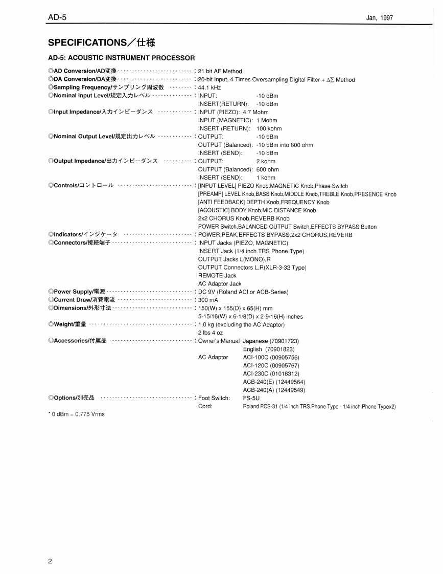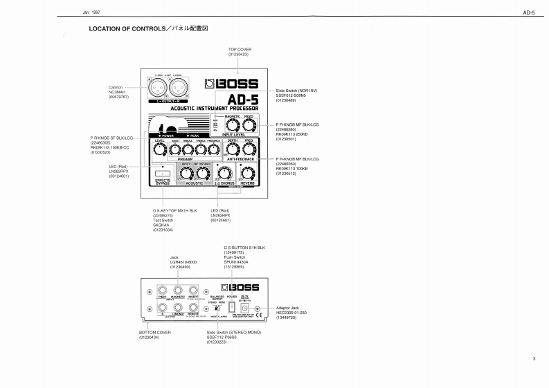 Jan,1997AD-5迈B▣SSAD-5SERVICE NOTESACOUSTIC INSTRUMENTFirst EditionPROCESSORIssued by RJATABLE OF CONTENTS目次PageSPECIFICATIONS·仕樣…2LOCATION OF CONTROLS·代礻儿配置☒…3EXPLODED VIEW·分解☒………4PARTS LIST/パ-ツ少又卜…5TEST MODE…子又卜毛-ド…6一8ERROR MESSAGES·工与-火以乜一…9IC DATA…1Cデ-夕……10PWB…基板☒………11、13CIRCUIT DIAGRAM................回路☒…12、14(1:GND 2:HOT 3:COLD)00B▣SG0+L-OUTPUT-R■AD-5ACOUSTIC INSTRUMENT PROCESSOR-MAGNETIC PIEZONORINV●POWER●PEAKINPUT LEVELLEVELBASS MIDOLE TREBLE PRESENCEDEPTHFREOPREAMPANTI-FEEDBACKBODY MIC DISTANCE●EFFECTSBYPASSACOUSTIC2x2 CHORUS REVERBRFLOTE ONICFECopyright c1997 by ROLAND CORPORATIONAll rights reserved.No part of this publication may be reproduced in any form without the written permission ofROLAND CORPORATION.本苦)一部、七儿〈体全部無断C複写·耘截寸石之上在禁心志寸。Roland17059870Printed in Japan AF00(CR)1