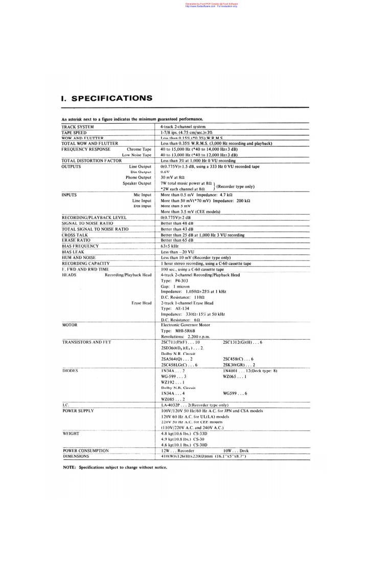BCASSETTE STEREO TAPE DECKMODELCS-33DALSO APPLICABLE TO MODEL CS-30 CASSETTESTEREO TAPE RECORDER MODEL CS-30DCASSETTE STEREO TAPE DECKSECTION ISERVICE MANUAL3SECTION 2PARTS LIST ...........................15SECTION 3CONNECTION DIAGRAM.······32SECTION 4SCHEMATIC DIAGRAM,...·.·.·.·36