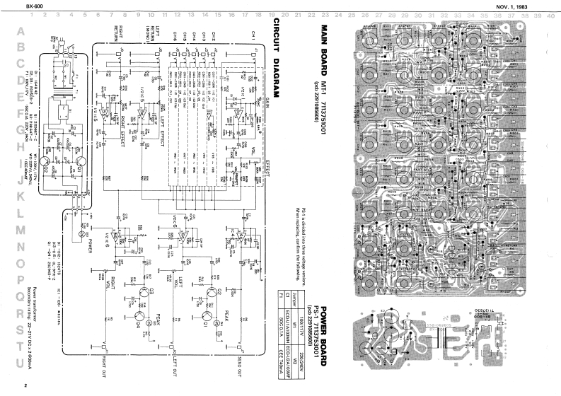 M0V.1,1983BX6005B▣SSBX-⑧OOSERVICE NOTESPARTS LISTFirst Edition2245036300 Power transtormerSEMICONDUCTOR2201061800Panel (top)15180136N5218L02202021400Panel (botton)151291082sC945-2SPECIFICATIONS151296022g0667=C151196022SB647-C-38.10to35kHPCBInput tmitity-1d8nFretpescy repome15019120182473-T77nput impedance1k0-200kDCrtnitilk:0ee1t0n76时B7113751001a4nT-1(peb2291085600)15019654①-16EB-2-T2ene里150192601G4B42L/I cutput levelRaed +4dBm 11.2Vmm)Ibetween chatnels)7113753001 Power PS-1(peb2291085600)Mors than SEdnThree versions are svaflable:61502912BCL-9PR-2LEDLoad imped山nawMore than 10452100,117vand220/240W.Power source100N117220240WMust be speeifled when orderz.Max +21dBmC00HOTHERSMore than 10ksPower comumation4W12199542SN5057 Yuse holderEMleel returnDimesions280Wx0H1码DnnPOTENTIOMETER12559351SGC-0.1A Yuse100/11271IWM×23H川s18Dn01327974312559522CEE-T40mk Yuse220/2407104tn0e0:47且-00kD中t1.2kg /2 l 6 a2.MASTER (L.R)13549884H0EC0-51032C1100w:-113B (MIC inputl IHF-A013279744事5日9色640具0Hc013279745EVJFOMF25AE5 250KA135B9455HDECQ-U2A103HP CI220/2407EFFECT(L,R013449133HLJ-0521-01-110Jack013279746EVJFOAF25B14 10KBVOLUME13149102MARQU-ARDTpever avitch3132797311801,0121Power Switch013279747EVJFKAF25B14 10KBPANPOT1236941017023L1位e cord4[ra4=relfetKNOB2225021400Shield sheet22191a11Ch 2 C.4 Ch6 LEFT LEFT02247029700REDpeb Holder FS-12235012000Rubber fcoth.1Ch.3Ch.sSEND RIGHT RIGHT02247029800ORKMASTER (L.B)02247029900YELVOLUME2247030000GENKEFECT,KEFECI (L.B)RETURNI⊙INDOCATOR2247030100BLUPANPOTGAINKnob REDOEFFECT1.Knob0更Pindl ltopEFFECTO NASTERKnob GRN(LB)OKnolPANPOTORN⑩Knob BLUOVOLUMEOK阳bYELRolandPrinted in Japen BC2
