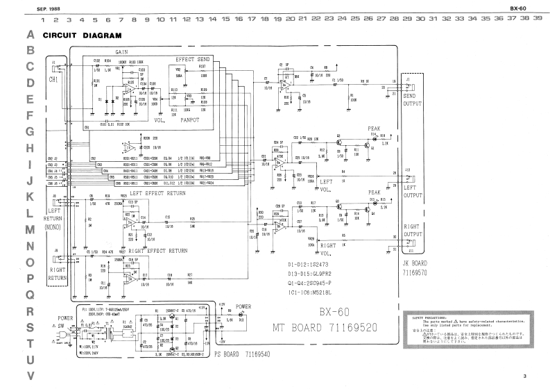 SEP.1988)E▣SSBX-⑥▣SERVICE NOTESPARTS LISTFirst EditionSPECIFICATIONSSAFETY PRECAUTIONS:The parts nrkedA have aafety-related characteristies.nput LreaVInout Imped线tRated -00dBn 19-10dllmUse only listed parts for replacerent.ere than1.k01o10k且Output LirdlRated +dBm安全上注意:Mas +21dBm△什《石部品灶、安全上特别规路T)《亏机态老的下寸Output Lead impedance:Mere than10hT交换的降甘、注意在上〈脱办,指定芒九大舒品叠号以外部品生使力交k与已儿t下各。EHlect SendCutput LavelRated -20dBmNore than 10kEffect RetureInput Leelabad:-20时8m2u0过Insut Impadano;47里▣300nEquivalest leput Nobe-115c8m (HF AlM TCH43p1402Frequency Hepeme20H2 to 20HFdB)IACK SOCKET1L-0021=01=1000dBm -Q.775V拉药·科1门L4号14#满3期=图AC Powwer100117220240vAC00Ha卡◆之其Power ComunptionA242门8r74Iw280 (Wl x 60 IHI x 155 (DI mm11"238”%乐1得12hs2b.100d.valtape'e Ch the杆a小女HLH07101-11013449133245-111e3¥YKB21-5012+-r1418Power Switch:1801-010222010920045e42PectlELee1314B114GAA白I0R0,1wPot.EVUJ27EF2C15132?8LEDPat.(15029128111327g181112145wICm5从1与Pot.KecbEVUJ26EF2G142247038g0m40Ga▲214211789Pa8:EVJFOAF25AF5120,101.10224703880001Gm1112网J4B1AC CORD.COMD SETCond 1ax InbP进.EVJFOAF25814113297481Krob2115-362.3224033800Gy1132707431RolandPrinted in Japan ao uo