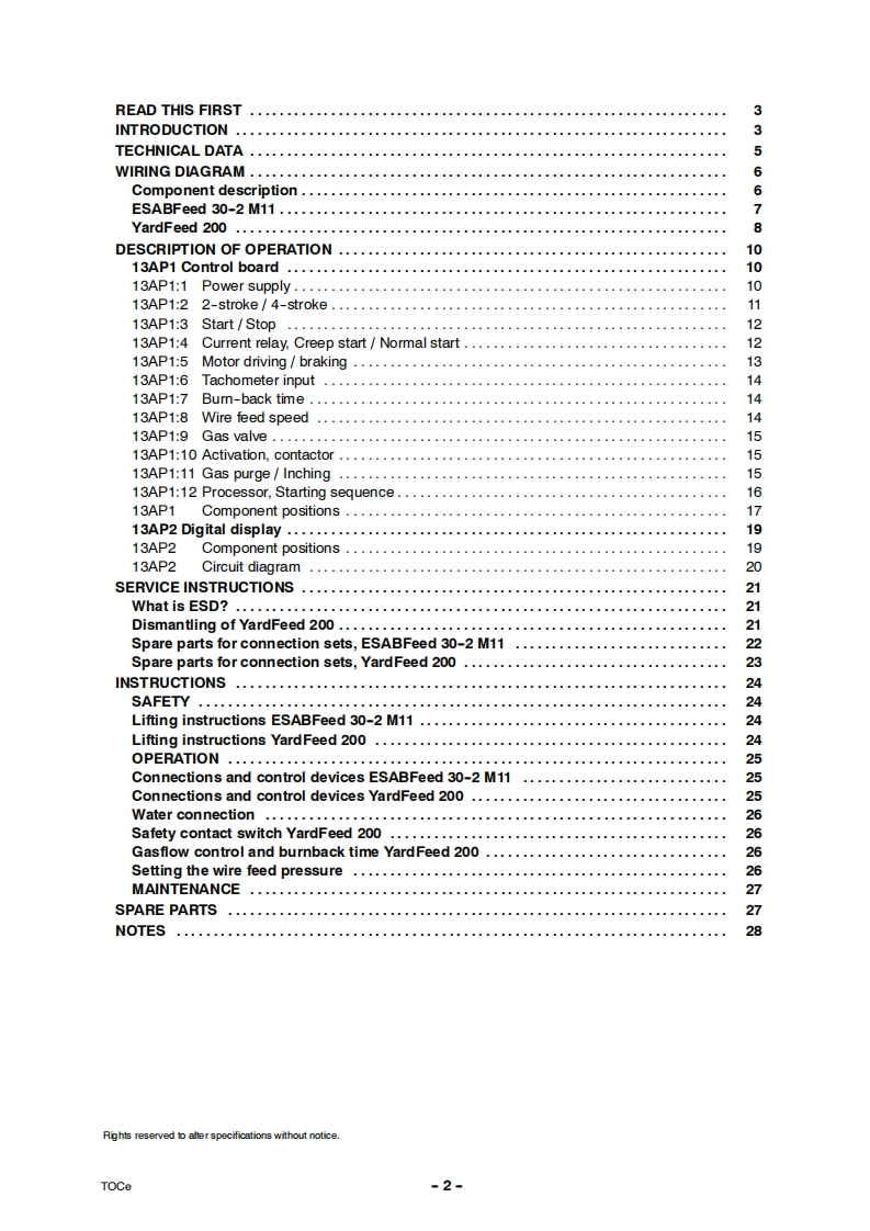 317_ESABF2030找手册网9小时前发布关注私信0.76MB30页048317_ESABF2030此内容为付费资源,请付费后查看¥29¥31黄金会员免费钻石会员免费立即购买您当前未登录!建议登陆后购买,可保存购买订单付费资源 第1页 / 共30页 第2页 / 共30页 第3页 / 共30页 第4页 / 共30页 第5页 / 共30页 第6页 / 共30页 第7页 / 共30页 第8页 / 共30页 第9页 / 共30页 第10页 / 共30页 试读已结束,还剩20页,您可下载完整版后进行离线阅读 THE ENDESAB 文本预览 ESABESABFeed 30-2M11YardFeed 200Origo TM M13yESAB YardFeed 200@ESABService manual0740800148060619Valid for serial no.238-xxx-xxxx to 612-xxx-xxxx 查看更多 收起部分 喜欢就支持一下吧收藏
