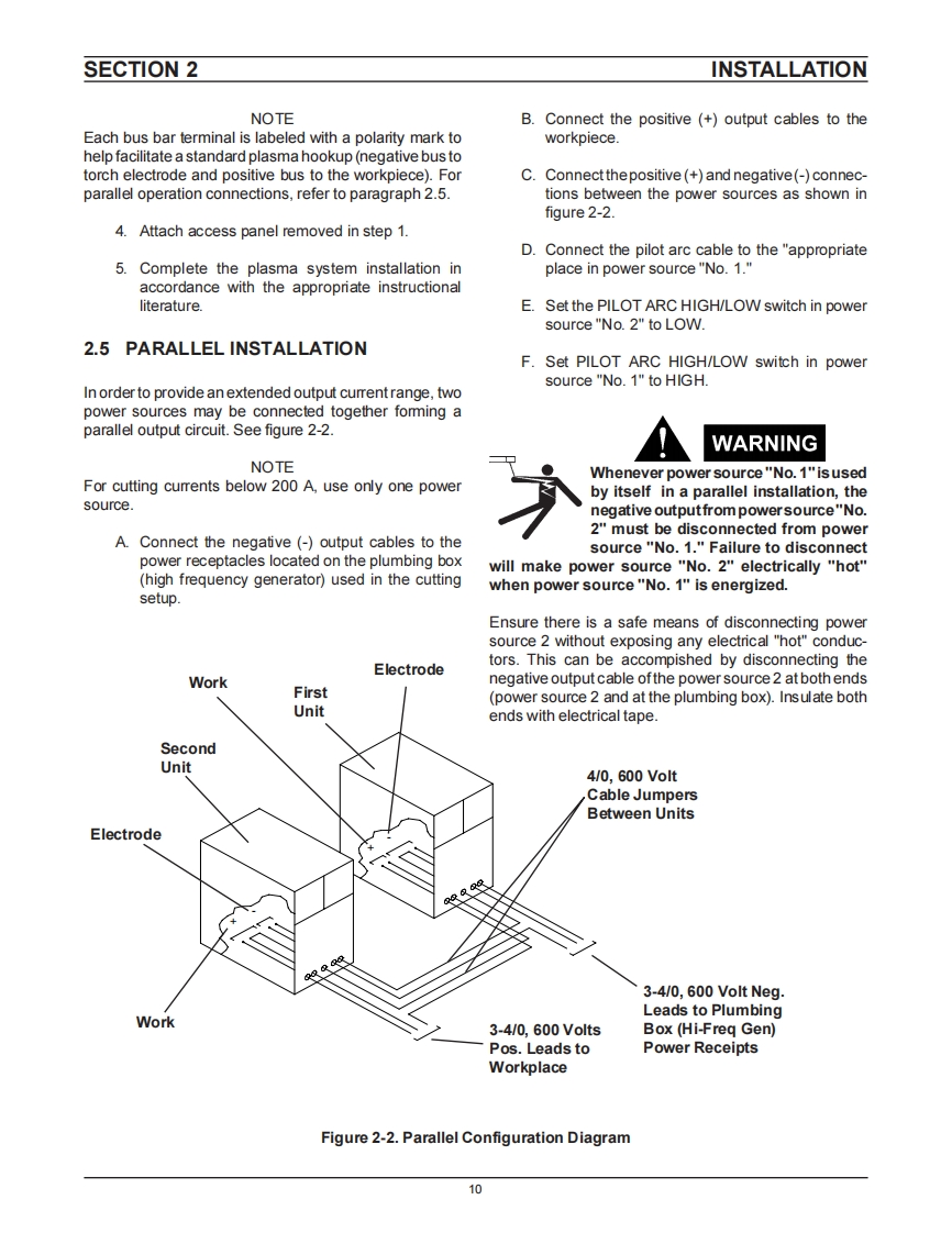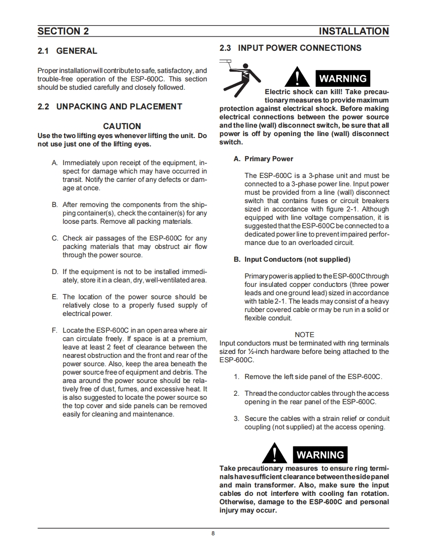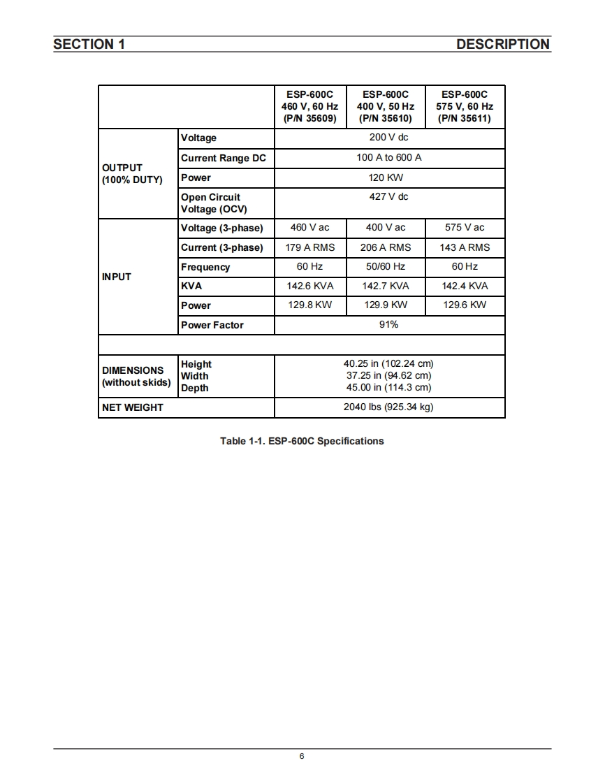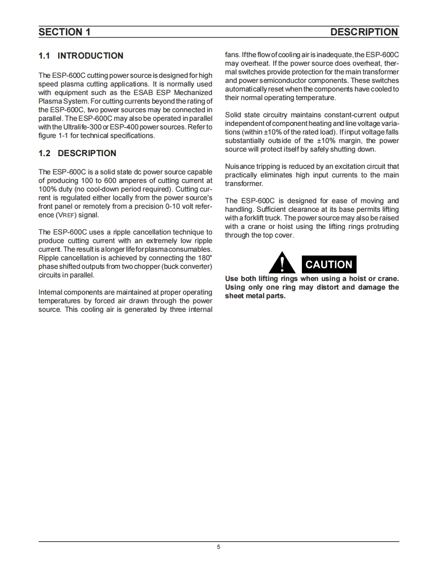 F.15-237October,1995INSTRUCTION MANUALESP-600CCutting Power Source806g0⊙O①O①This manual provides installation,operation,maintenance,and troubleshooting instructions for the following units:ESAB P/N 35609-460 Vac,60 HzESAB P/N 35610-400 Vac,50 HzESAB P/N 35611 575 V ac,60 HzCAUTIONThese INSTRUCTIONS are for experienced operators.If you are not fully familiarwith the principles of operation and safepractices for arc welding equipment,we urge you to read our booklet,"Precautions and Safe Practices for Arc Welding,Cutting,and Gouging,"Form 52-529.Do NOT permit untrained persons to install,operate,ormaintain this equipment.DoNOT attempt to install oroperate this equipment until you have read and fully understand these instructions.If you do notfully understand these instructions,contact yoursupplier for further information.Be sure to read the Safety Precautionsbefore installing oroperating this equipment.Be sure this information reaches the operator.ESABESAB WeldingYou can get extra copies through your supplier.Cutting Products