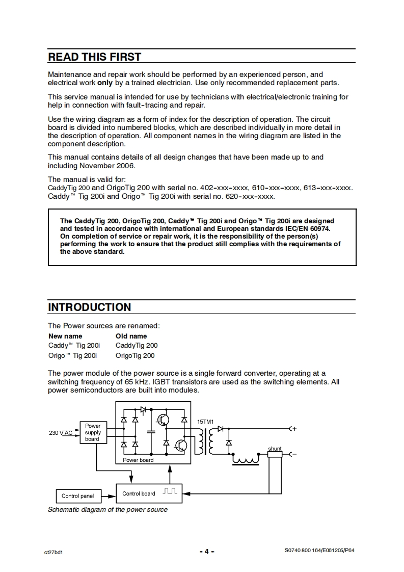 63_esab-Caddy_TIG200I_O维修手册找手册网9小时前发布关注私信1.62MB64页02563_esab-Caddy_TIG200I_O维修手册此内容为付费资源,请付费后查看¥29¥31黄金会员免费钻石会员免费立即购买您当前未登录!建议登陆后购买,可保存购买订单付费资源 第1页 / 共64页 第2页 / 共64页 第3页 / 共64页 第4页 / 共64页 第5页 / 共64页 第6页 / 共64页 第7页 / 共64页 第8页 / 共64页 第9页 / 共64页 第10页 / 共64页 试读已结束,还剩54页,您可下载完整版后进行离线阅读 THE ENDESAB 文本预览 ESABCaddy TM Tig 200iOrigo M Tig 200iESABESAB0000a0Service manual0740800164061205Valid for serial no.402-xxx-xxxx to 620-xxx-xxxx 查看更多 收起部分 喜欢就支持一下吧收藏