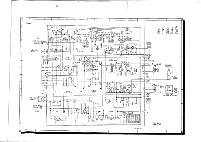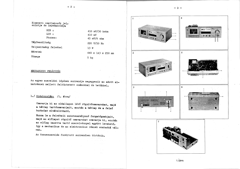 AKAI CS-M3SZTEREO KAZETTAS MAGNO DECKAKAIKeziratkent sokszorositva a Ramovill szervizhalozatroszere,bels8 hasznalatraOsszesllftotta:Walter JenEllenGrizte:Sztankovics Gyula1.1141982.国AMOVILL,Enged6ly nelkul msolni,vagy az adatokat felhasznaini,illet6ktelen szemdlynek tadni TILOSI"MUSZAKI ADATOKSAvelrendezes4 savos,2x2 csatornas sztereoAlkalmazhato szalagokCro;normal;MetalPelveteli rendszervaltakozodramu elomagnesezeskezi szintszabalyozasT6r168valtakozodrammalSzalag8ebe88ég4,76±2%cm/secPrekvenciadtvitelnormal:30-15000Hz/±3B//-20U/cr02:30-16000Hz±3dB/-20VU/30-8000Hz±3aB/0VU/Metal30-18000Hz·±3aB/-20U/30-·12000Hz±3aB/0u/Jel-zaj viszenynormá1:mine56BCr02÷mina58 dBMetalmin.58 dBDolby NR kapcsol6 ON llasban 5 kHz-enHarmoniku8 torzitaásnormal:max。0,8%Cr 02 imax.0,7%Metalmax.0,7%Bemeneti csatlakozok jel-szintje es impedancidjaMIC0,25 mV/5 kohm/mikrofon impedanciaja 600 ohm/DIN0,25 mV/2,2 kohmLIN70 mV /47 kohm