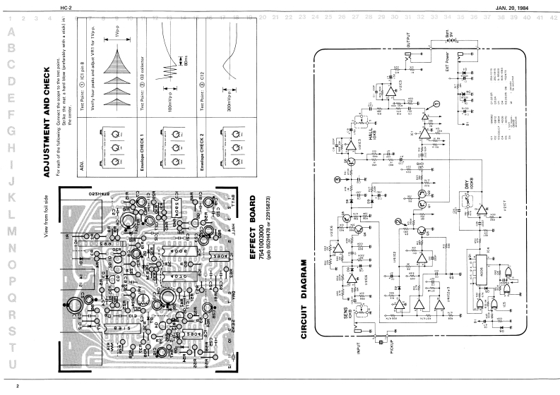 1AN.20.1984HC2BOSS HIC-2 SERVICE NOTESPARTS LIST2201517100Pane1First Edition220D2521400Botton cover2235532800MatSPECIFICATIONS22J5001300Base9 DC 011mA (Bortery or AC adapor)2202062700Battery coverlrost leedmore thon 150mV RMSCutput lovel1VppOutput Lead Impedange mgre than 0cPCB:4重AIH13Dm■3-11/160x2-120×5-3D1n7541001000Effect board(peb052H478ax22915873)weh加40g了1h.CFRONT VIEW15229802A662AVCA15189113A6912Quad oP15189169045223Dual OP anp OFFSET Seleeted (yel dot)15159117H0DL40703FQuardruple exelusive-0R gateJack HEC 074901-01015159140ED1400%F18-Stage statfe shift regfster113449704)TRANSISTORJack TJ300P-Jeck TJ-200P1511911328A1015-GR413449134H344924211512911428C1815-GR151291070028C945-0ga selected (red or ora dot)DIODE8w------2213011132910g)102米815019209T0s-5500G15019523RD5,1E83乙enwr150191031s2473Pet EVHEMAJG0014POTENTIOMETERRYAL41177910a引11229105EVH8MA36081410KB12201317100411229106EVH8MA360815100KBNl Knote22470170W13299179a7F-6201-10310KB TxirgerC-2JACK13449242TJ-200pBgttom Cever --13449136T1-300p17202423013449704HEC0749-01-010223512800川OTHERS12189709Ks-27D2-3APlezo eleetrfe pfckup12202062002216080500GaaketpIckup2247017600Kmob (B)1341920600s1-2102Battery snapChaisis remosal icrev IBottoml2226031600Cushion3 x 8 mm Binding B k2202081400Insulatlon sheetRolandPrinted in Japan.BE2
