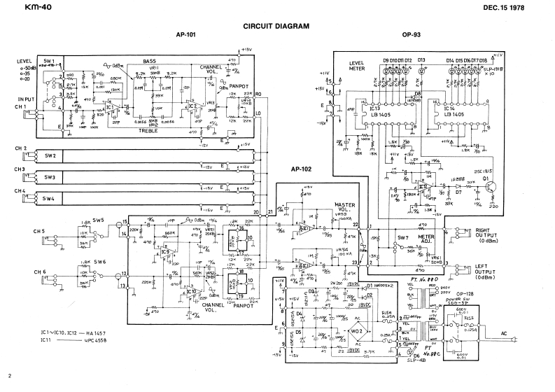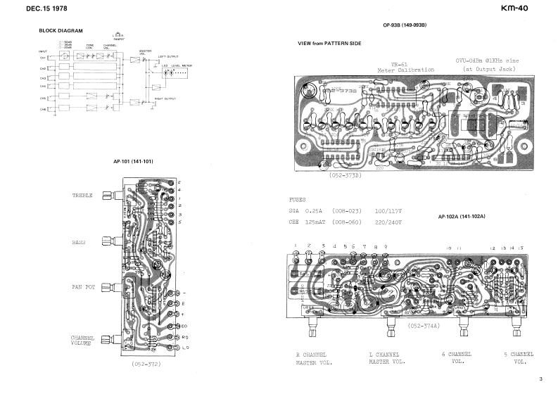 DEC.151978Km-40⑤E▣SSKm-4 O SERVICE NO0正SPARTS LIST051=215Chasais (top ganel)D0.215Potentioneter065=196Cover (botton panel]no.196First EditionRVHE8A-360 B10X064-193Holder(rack &ngle)L/R no.193111-025Rubber foot 0-14(2nd Printing JAN,20.1964 E-2){02B-1120)POWER TRANSFOHMKRSSPECIFICATIONSOutl jk,LEFTIRIGHT ..2022-0B50M0.88C1D0/117W,.te快70u8Svitch HSW-478-1-8022-068D0,88D220/240VIFet★6(001-168)SVITCHES.KNOBSC01-168H8m-4TB-1-8slide001-1603D0-5P5物nh1aK企016-0D4Button no.4 ivary 8DG-5P球金鸡是两LED8LP-1318016-058Knob no.58 ar TK-1112(019-013j016-056Knob no.56 or TK-1114PCBaPotentiometerSviteh141-101AP-101(052-372)BVH6PA-360-B50K日8w-478-1-8141-1D2AP-102A〔052-374A}(028-1145)(001-166)149-093里0p-95B(052-373BSvitch5x8mmH052-575ALeaa parts 8DG-5PSG-5P《001-160)nob1g-1114{016-021】POTEKTICHBIKR8orButton no.402B-1147VH6FA-360B1410用nobn0,56《016-056}1016-00402B-114e3VH6FA-360B2420028-11453VTH6FA-360B5450田028-1133V7H6FA-360A151002APotontioneter028-11203VHBBA-360 814 10KB wired 108d02B-0055450Btrimner7H6PA-36D-10K《028-1147)Corer no.196(D65-196)020-1901.B-14002D-060HA-1457e0020-097AC-4558IRack angle no.193019-01391P-1习BLED(064-193)Chassia no.215019-014SLP-4801B-068054=11aoner(061-215)1B-024052-15A1日-4003diode01B-05913-15B8diodeFotentioneterPotenticmeterRack angle no.19301B-0B2N02bridgeBVH6PA-360-B20K《064-193)017-110280-15-YH62A-360-A100X[02B-1135][028-1145)Knob TK-1112 or no.58U3Z8.FU8E HOLDERS(016-020)0r〔016-058)ID8LP-4B{019-014012-003日older1f-75B80,012-029Holder 8-N5054prim.308-0238GA0.25A8e0-08-06025CmAT 800.J veraionG00,125Ar1m.c08-057CBE 125mAT 80c.J verafonLine cord etrain009-004wa0kT。-241-2044-465Re818t0rH0-2200-ahrelter EA-5netal oxide film 2W(047-025】J8ck8TJ-241-21009-004)Rubber foot G-14 (111-025)Pyinted in Japan