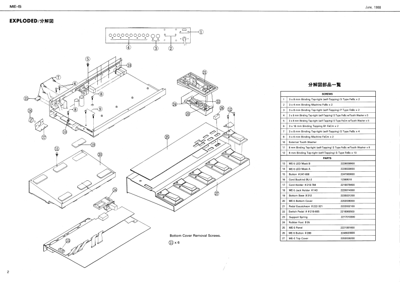 ue18ME-5B▣GGME-5SERVICE NOTESFirst Edition121213410521-041SPECIFICATIONS13420-2kBm/1MG22224000663105110-3拉n aner La-4D13458D0智tu0EMect Send--n风n力日0et0属0-2s4d国】8Bult-in EHects113660051-05-40130911-00001356LOW LEVEB的TDwyDimens相f5*=-34”g28,”X11”hga别物e械1g1足54的TS-8C.OF1TABLE OF CONTENTS目次PageSPECIFICATIONS仕辑LEDGL山TM0rdEXPLODED VIEW分解回241004LED MPARTS LIST-以)天卡LEDIC DATA1g子-夕Top CourMT BOARD (Digital Cirouitl回培圆《于多儿】4moR06n00BLOCK DIAGRAM▣y7回LED-LIDMT BOARD基板回GL3H④1519aMT BOARD (Analog Cirouit)回路国(子十口5)DISPLAY BOARD了f天7求-N&9POWER SUPPLY CIRCUIT7-梦7ラ10-5aADJUSTMENT阔整12221ce10TEST MODE子天卜毛一F12FAULT ISOLATION的豫整断上上之卜1215dutisnHOW TO SET -SEND/RETURNSEMD/RETUAN段定1622122402001CHANGE INFORMATION变更率内恒LED1529741219014Panel EpcurcheonSwitch Panel 21Swiloh Pasel 131Bwwinoh Purel [4l122202221CW1B562白10e6,221G1RolandPrinted in Jap时nD-2Cl