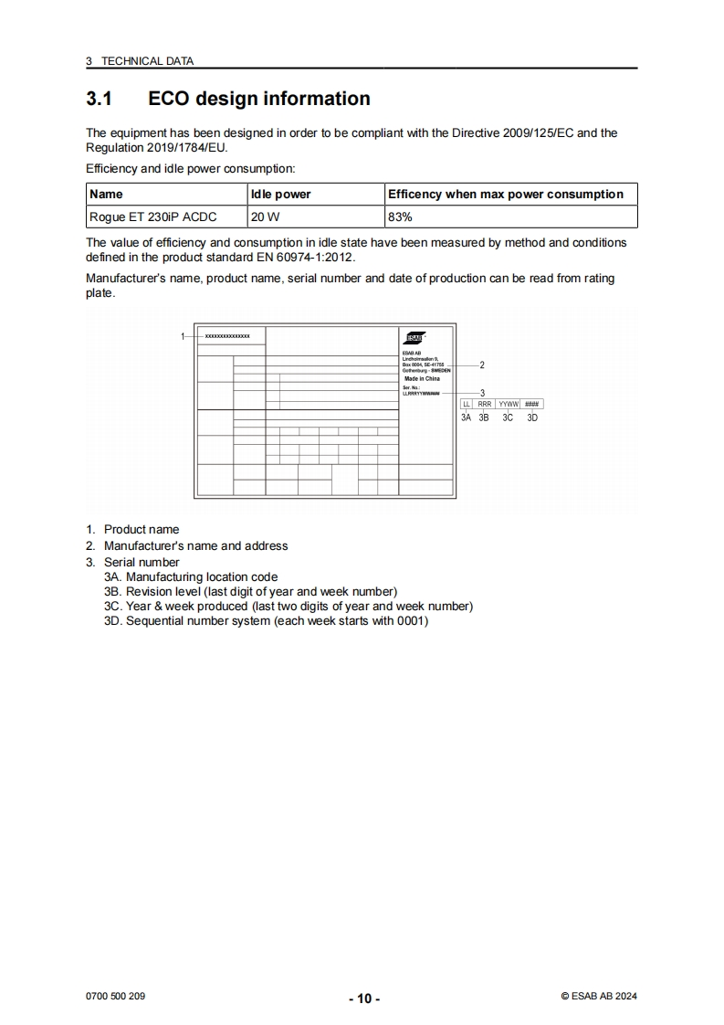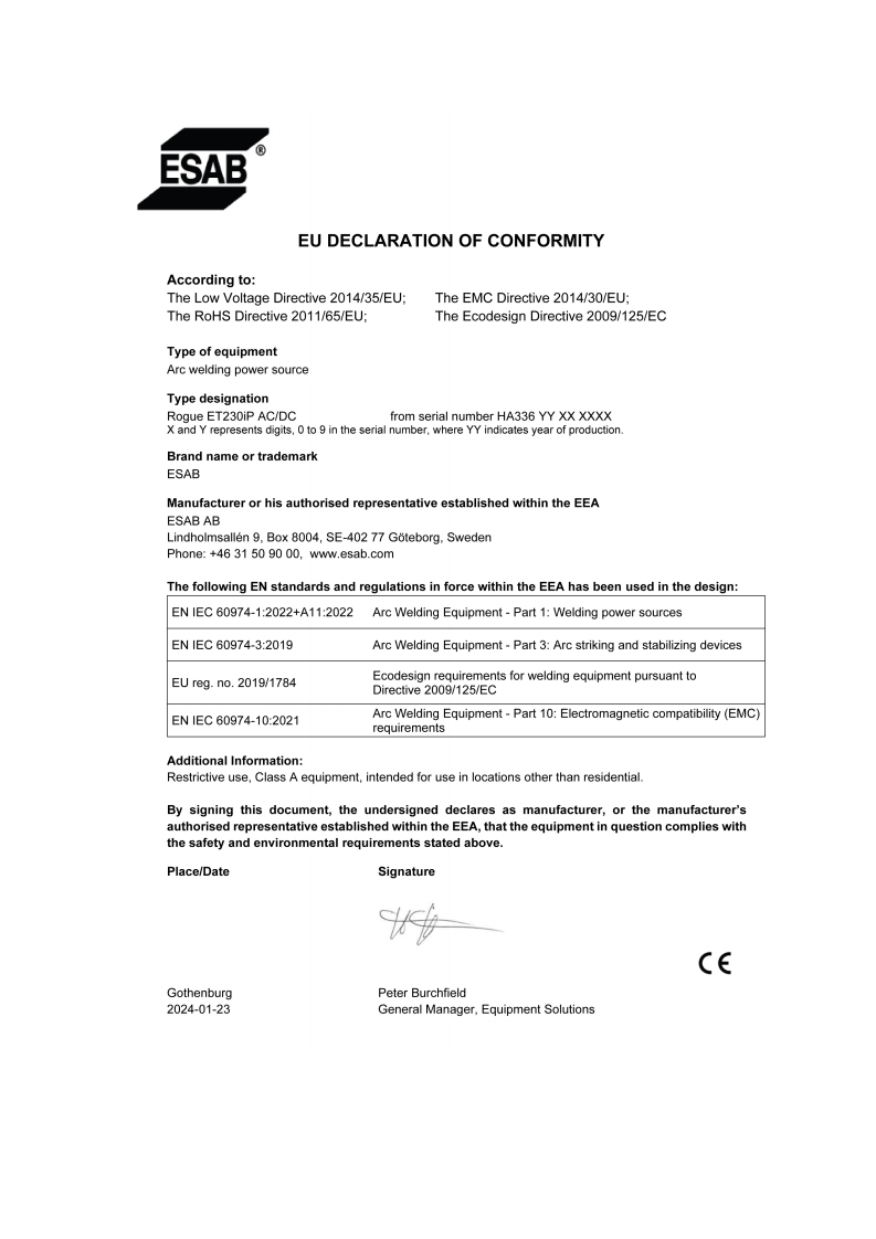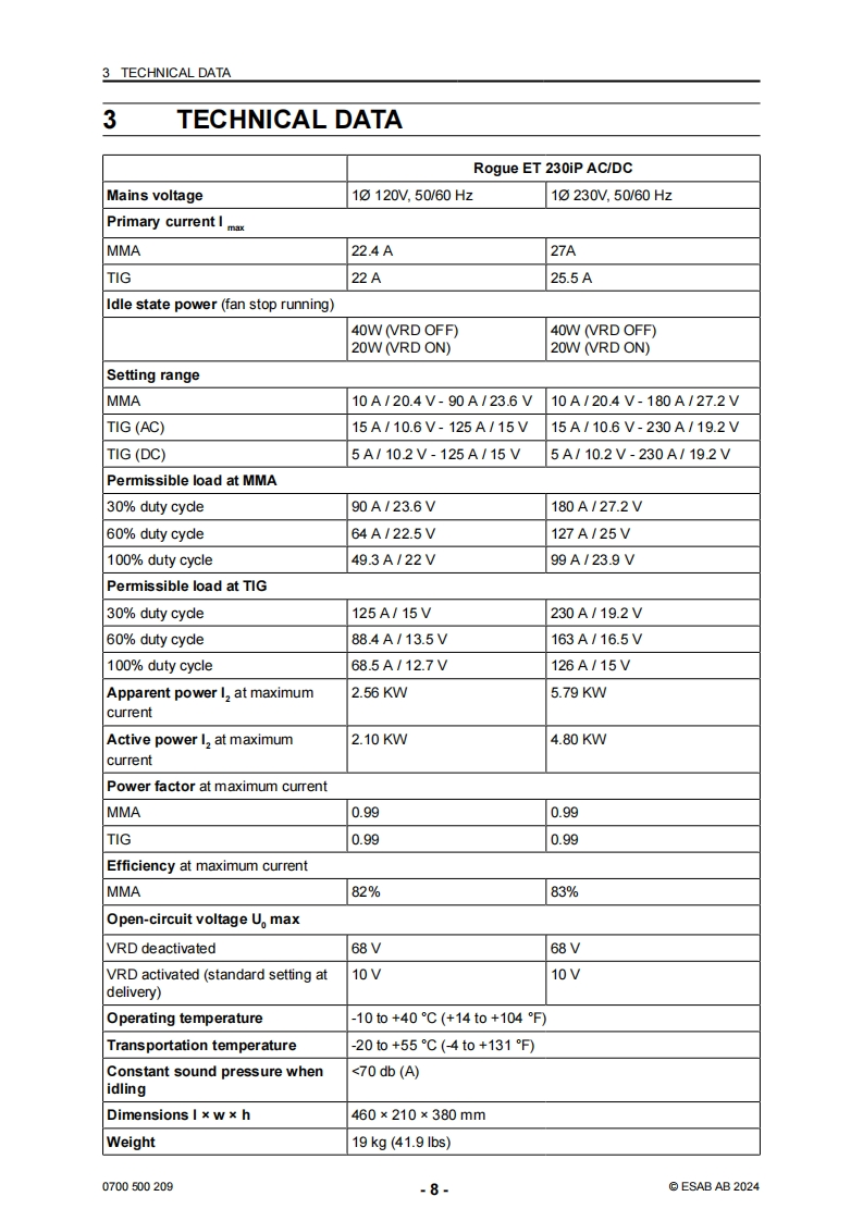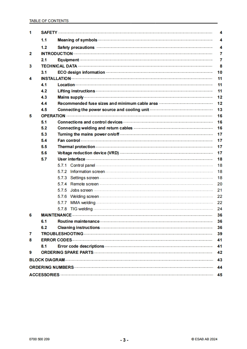 伊萨电焊机ESAB-ROGUE-ET-230iP-ACDC-Manual使用说明书手册含电器原理图找手册网9小时前发布关注私信10.54MB48页038伊萨电焊机ESAB-ROGUE-ET-230iP-ACDC-Manual使用说明书手册含电器原理图此内容为付费资源,请付费后查看¥29¥31黄金会员免费钻石会员免费立即购买您当前未登录!建议登陆后购买,可保存购买订单付费资源 第1页 / 共48页 第2页 / 共48页 第3页 / 共48页 第4页 / 共48页 第5页 / 共48页 第6页 / 共48页 第7页 / 共48页 第8页 / 共48页 第9页 / 共48页 第10页 / 共48页 试读已结束,还剩38页,您可下载完整版后进行离线阅读 THE ENDESAB 文本预览 ESABRogue ET 230iP AC/DC powersource16ARRGUEDCInstruction manual0700500209GB20240321Valid for:HA336YY-XXXXXX 查看更多 收起部分 喜欢就支持一下吧收藏