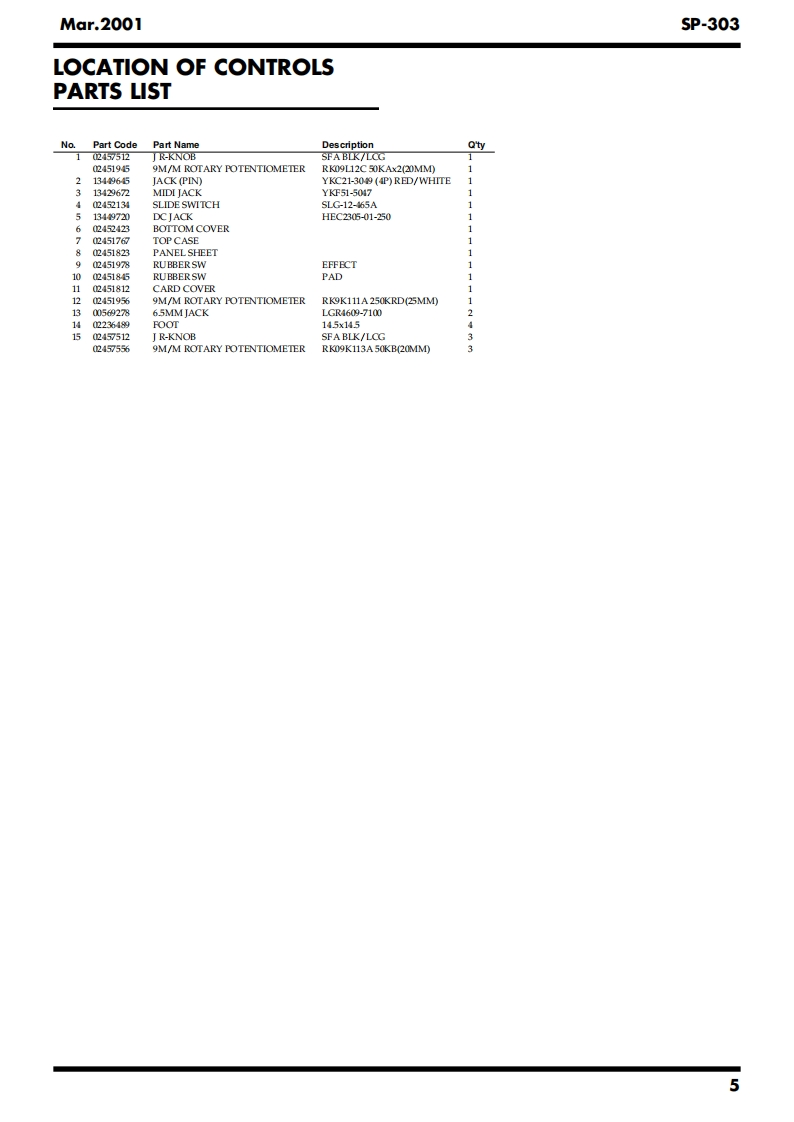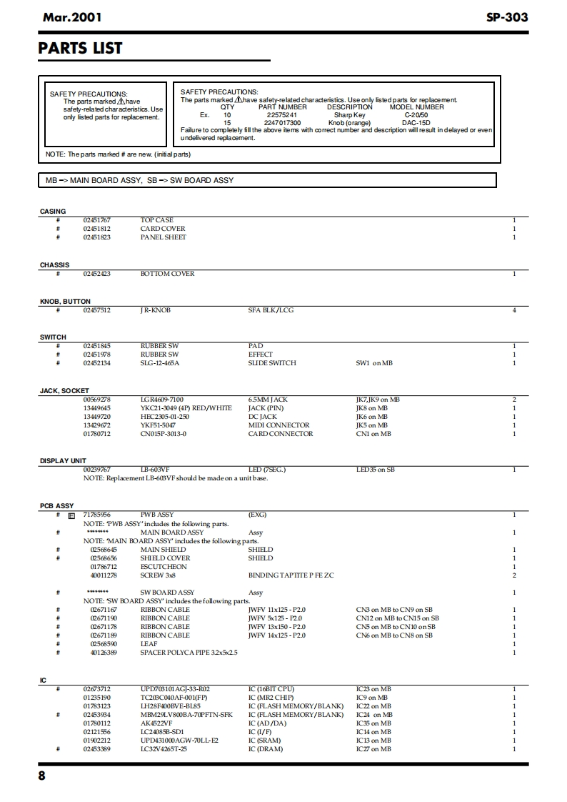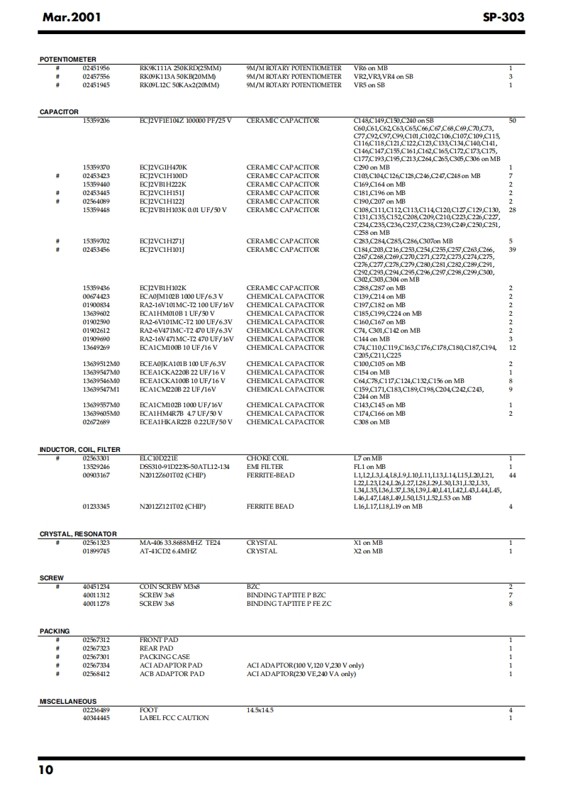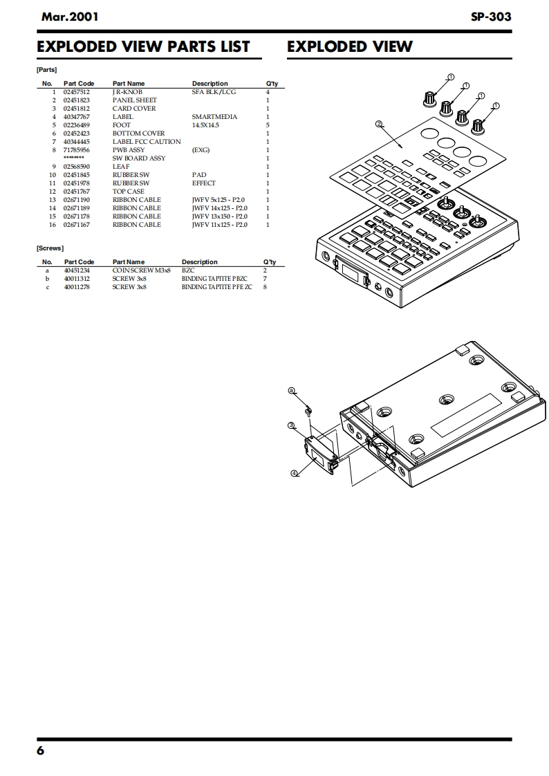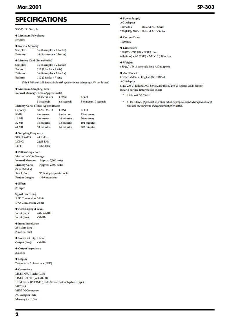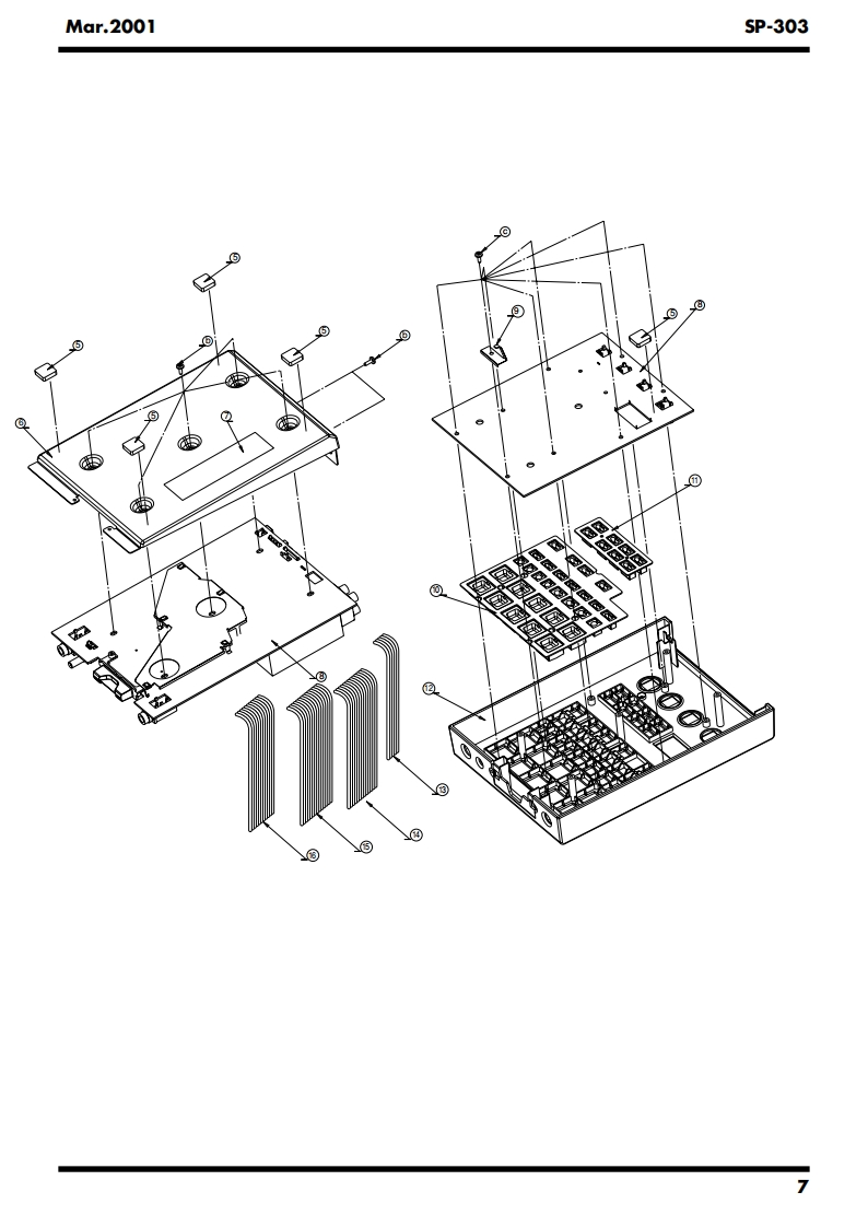 Mar.20015P-303SP-303SERVICE NOTESIssued by RJAPr.SampleContentsSPECIFICATIONS....2LOCATION OF CONTROLS...4LOCATION OF CONTROLS PARTS LIST.............5EXPLODED VIEW PARTS LIST6EXPLODED VIEW..6PARTS LIST........8IDENTIFYING THE VERSION NUMBER..................12SAVING USER DATA RELoADING SAVED DATA..12HOW TO UPDATE SYSTEM SOFTWARE...........13TEST MODE RESORTING THE FACTORY SETTING...14ERROR MESSAGE........17ABOUT THE SHAPING OF THE WIRING18BLOCK DIAGRAM..........20CIRCUITBOARD.....22CIRCUIT BOARD..24CIRCUIT DIAGRAM(DIGITAL1)........6CIRCUITDIAGRAM(DIGITAL2).......................28CIRCUIT DIAGRAM(ANALOG).....30CIRCUIT DIAGRAM(SW)...........32CIRCUIT DIAGRAM(POWER).....34H-Ust-Ot☒E口SSDr.Sample 5P-303@28尚可品回可网可HOLDw“Copyright 2001 ROLAND CORPORATIONAll rights reserved.No part of this publication may be reproduced in any form without the written permissionof ROLAND CORPORATION.Roland17059080E0Printed in Japan (0830)(NB)