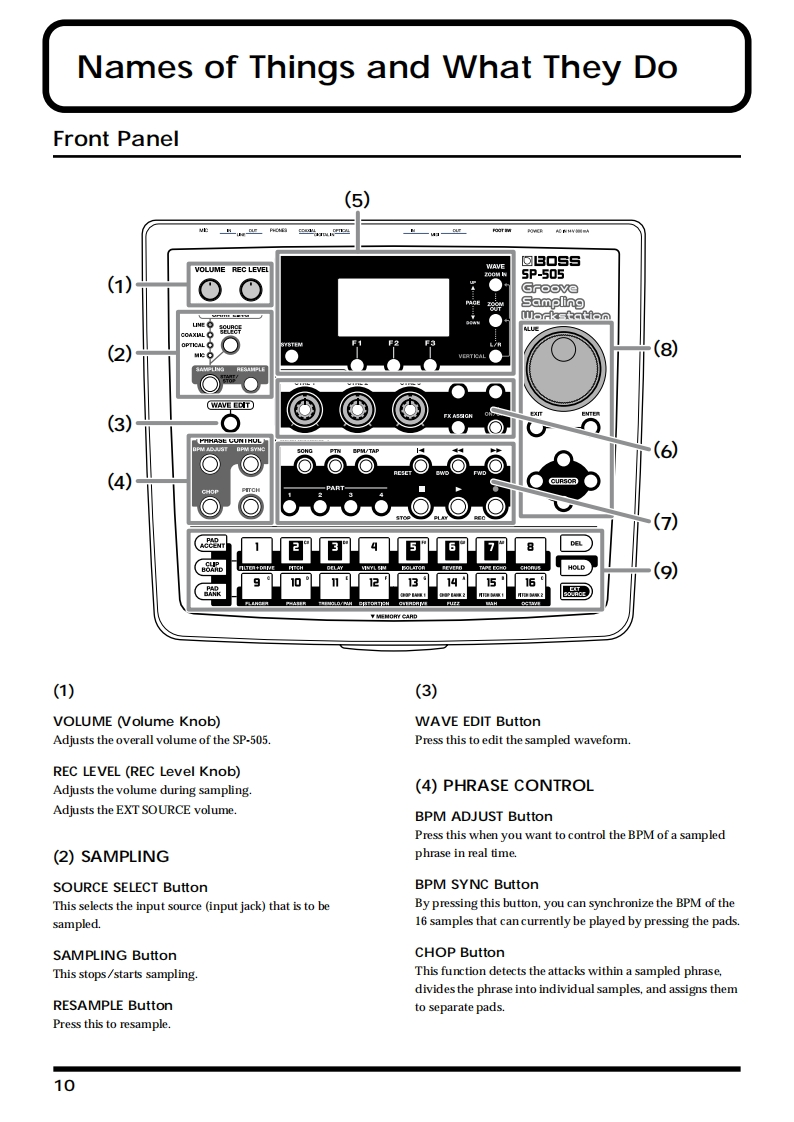 迈E▣马S5P-505GrooveSamplingWorkstationOwner's ManualThank you,and congratulations on your choice of the BOSSSP-505 Groove Sampling Workstation.Before using this unit,carefully read the sections entitled:USING THE UNIT SAFELY (page 2-3)IMPORTANT NOTES(page 4-5)These sections provide important information concerningthe proper operation of the unit.Additionally,in order to feel assured that you have gained agood grasp of every feature provided by your new unit,Owner's manual should be read in its entirety.The manualshould be saved and kept on hand as a convenient reference.Printing Conventions in This ManualText or numerals enclosed insquare brackets[indicate buttons[PLAY]PLAY button[REC]REC buttonReference such as (p.)indicate pages in this manual to whichyou can refer.Copyright 2001 BOSS CORPORATIONAll rights reserved.No part of this publication may be reproduced in any fomwithout the written pemmission of BOSS CORPORATION.圖巴画画只画四口吕