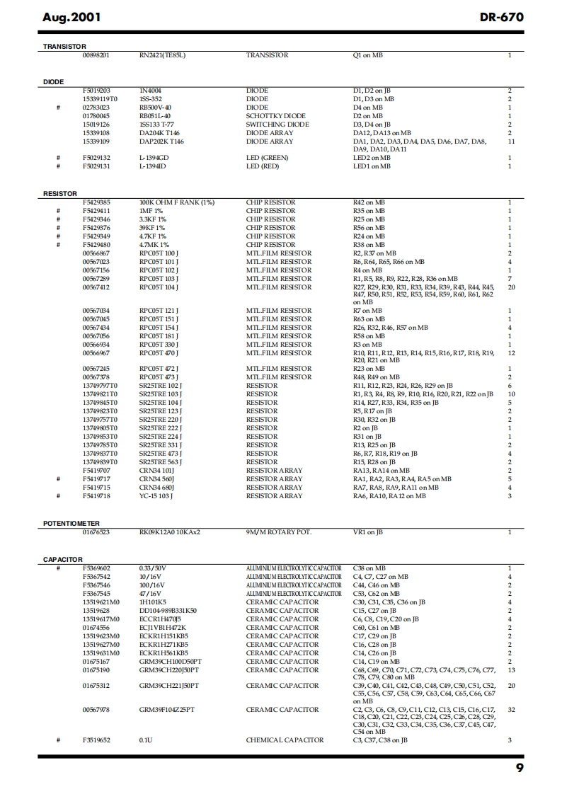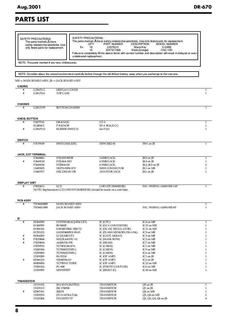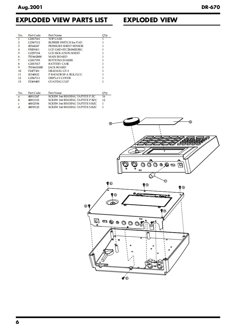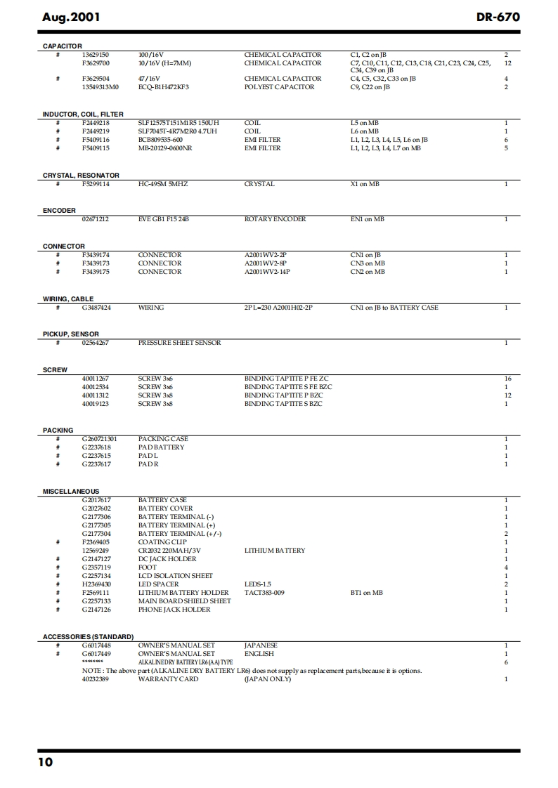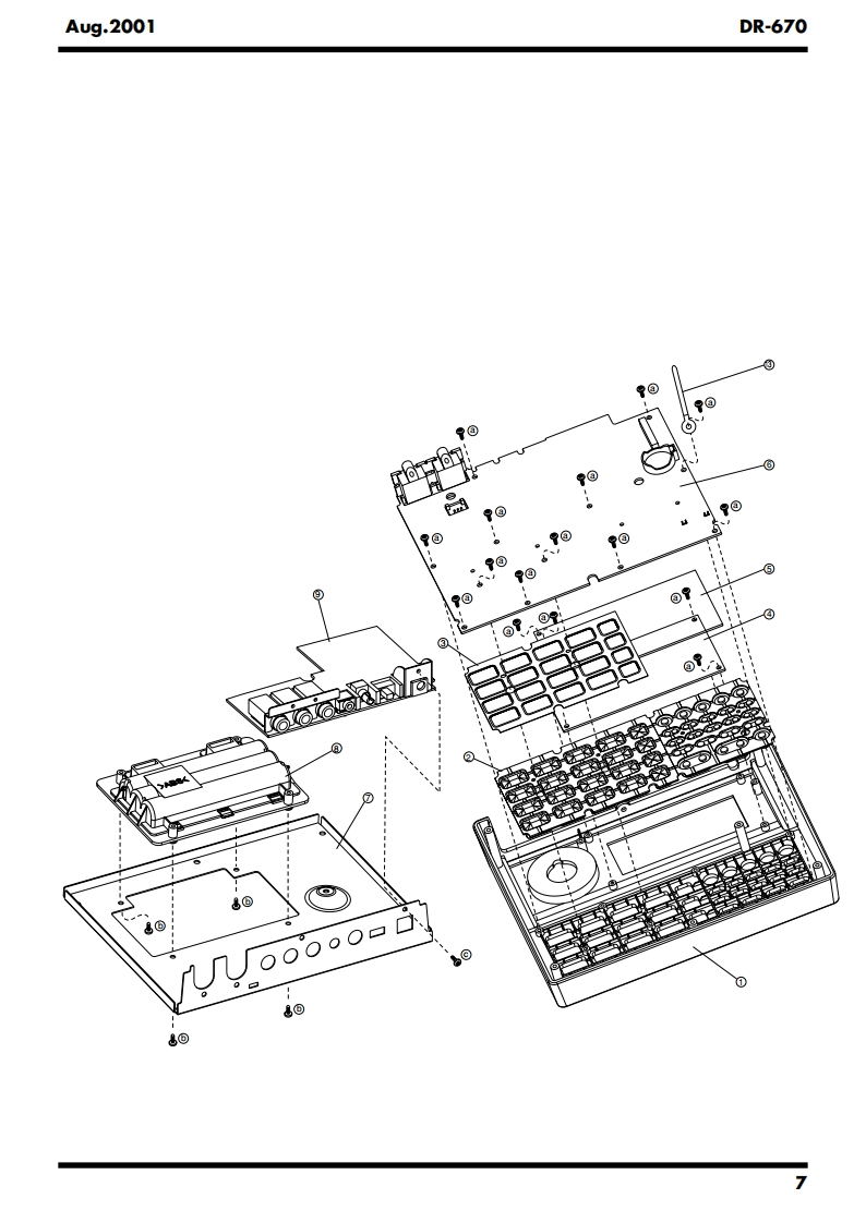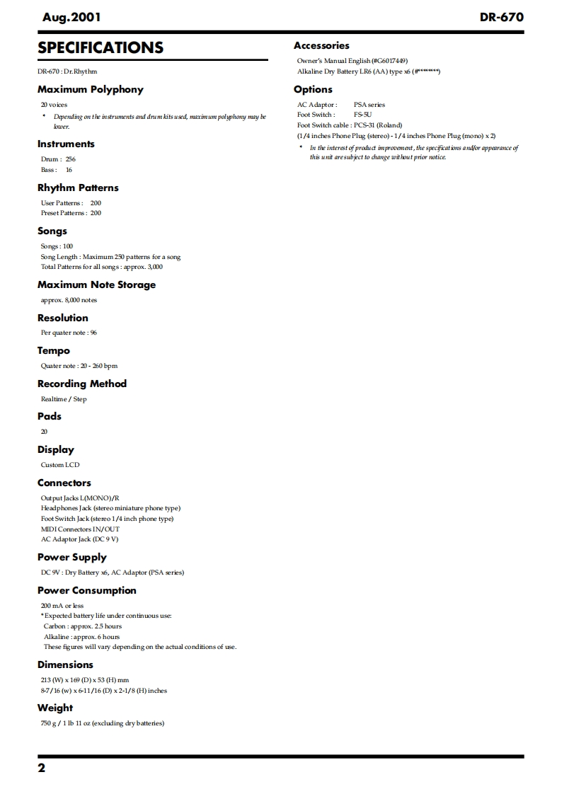 AUg.2001DR-670Dr:RhythmSERVICE NOTES0R-670Issued by RJATABLE OF CONTENTSSPECIFICATIONS.2RESET TO DEFAULT FACTORY SETTINGS (FACTORY RESET)...15LOCATION OF CONTROLS PARTS LIST .....4PROCEDURE FOR UPDATING THE SOFTWARE...15LOCATION OF CONTROLS...5ERROR MESSAGE LIST.....16EXPLODED VIEW PARTS LIST6BLOCK DIAGRAM18EXPLODED VIEW..6CIRCUIT BOARD (MAIN)....20PARTS LIST......8CIRCUIT DIAGRAM (MAIN).22IDENTIFYING THE VERSION NUMBER................11CIRCUITBOARD ACK)..24SAVEING USER DATA RELOADING SAVED DATA..11CIRCUIT DIAGRAM (JACK)....26TEST MODE.…12TEMPO/VALUE▣3▣SSDr Rhythm DR-670H田ROLLCRASH 26 6TOM3A91012 coCp0555]C6CLAPCOWBELLPEDAL HHTOP/CONT19FSTART156OPEN HCopyright 2001 ROLAND CORPORATIONAll rights reserved.No part of this publication may be reproduced in any form without the written permissionof ROLAND CORPORATION.Roland17058018E0Printed in Japan(0800)(NB)