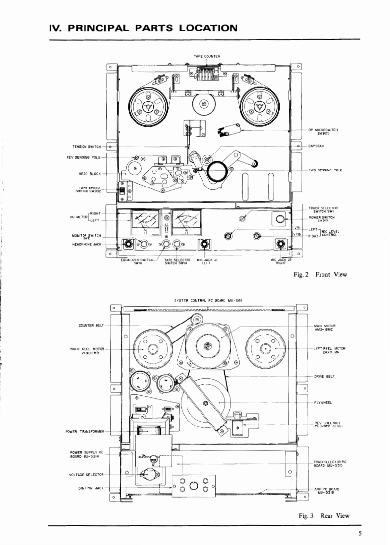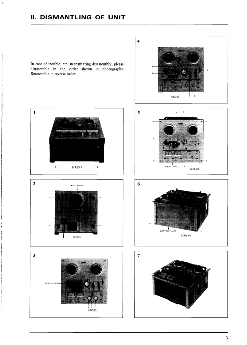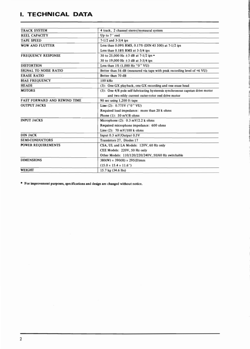 SECTION 1SERVICE MANUALTABLE OF CONTENTSTECHNICAL DATA·2Ⅱ.DISMANTLING OF UNIT.2Ⅲ.C0 NTROLS·····IV.PRINCIPAL PARTS LOCATION..........................5V.MECHANISM ADJUSTMENT....·.,,··6L.REEL TABLE HEIGHT ADJUSTMENT·.·.·······62.BRAKE TENSION ADJUSTMENT.......................63.LEFT AND RIGHT REEL MOTOR TENSIONAT VARIOUS OPERATING MODES.··.·74.FLYWHEEL LOOSE PLAT ADJUSTMENT.·..·....·75.FLYWHEEL BELT POSITION ADJUSTMENT,.·····76.SHIFTER LEVER ADJUSTMENT.····8VM.HEAD ADJUSTMENT···9VIL.AMPLIFIER ADJUSTMENT..····10VIm.DC RESISTANCE OF VARIOUS COILS.······12X.CLASSIFICATIONS OF VARIOUS P.C BOARDS.··.·...··.·121.RELATION OF P.C BOARD TITLEAND IDENTIFICATION NUMBER·.··.·I22.COMPOSITION OF VARIOUS P.C BOARDS..····For basic adjustments,measuring methods,and operating principles,refer to GENERALOPERATING PRINCIPLES AND ADJUSTMENTS.