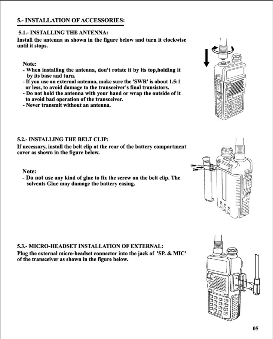 Baofeng-UV-5R使用说明书手册找手册网30天前发布关注私信3.59MB20页039Baofeng-UV-5R使用说明书手册此内容为付费资源,请付费后查看¥19¥21黄金会员免费钻石会员免费登录购买付费资源 第1页 / 共20页 第2页 / 共20页 第3页 / 共20页 第4页 / 共20页 第5页 / 共20页 第6页 / 共20页 第7页 / 共20页 第8页 / 共20页 第9页 / 共20页 第10页 / 共20页 试读已结束,还剩10页,您可下载完整版后进行离线阅读 THE END宝峰 文本预览 VHF/UHF FMTRANSCEIVERUSER'S MANUALFCC€0678▣ROHSDUAL BAND/DUAL WATCHCTCSS TONE SCANNING■5一DIGITAL SIGNALPROCESSING SYSTEM 查看更多 收起部分 喜欢就支持一下吧收藏
