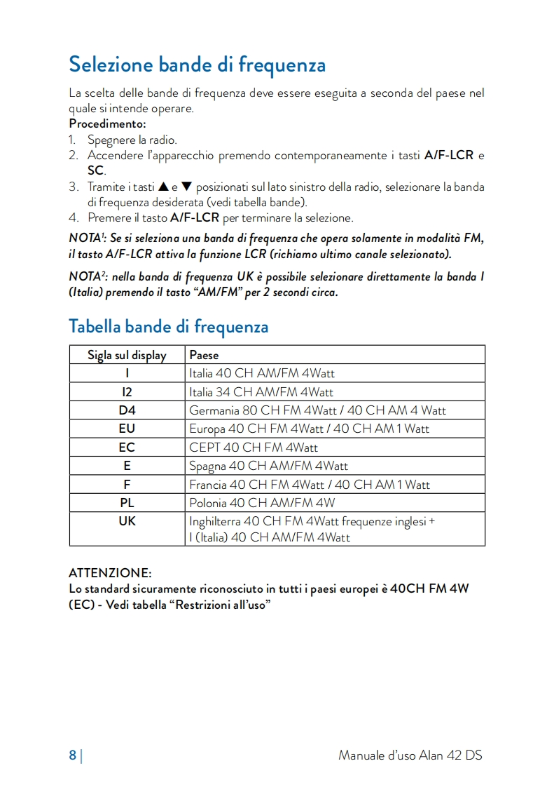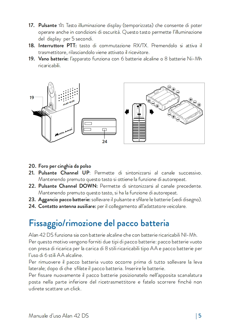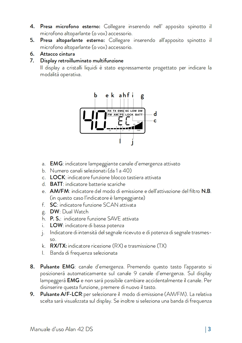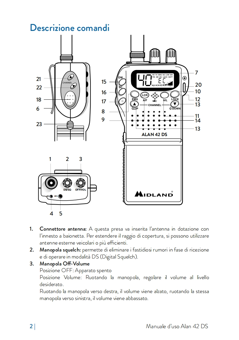 Alan 42 DSRICETRASMETTITORE CB PORTATILE-HANDHELD CB TRANSCEIVERCB HANDFUNKGERAT-TRANSCEPTOR CB PORTATILEMETTEUR-RECEPTEURCB PORTATIF-RADIO CBSTATIE RADIO CBLCREMGAFHL一CHANNELQ.UPQ.DOWNALAN 42 DSTHE BEST CB AUDIODIGITALNOISEANLSQUELCHBLANKERFILTERMIDLANDSYSTEMMULTIBAND MULTISTANDARD CB■■IDT/VAD参一¥MIDLANDWww.cbradio.n