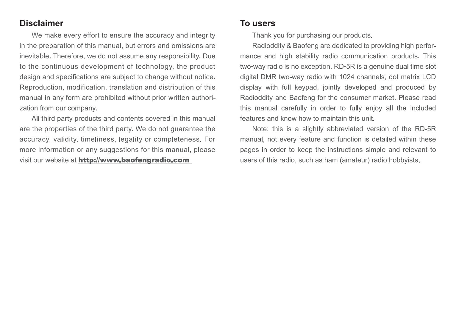 Baofeng_RD-5R_Manual操作说明书手册找手册网30天前发布关注私信2.58MB28页049Baofeng_RD-5R_Manual操作说明书手册此内容为付费资源,请付费后查看¥19¥21黄金会员免费钻石会员免费登录购买付费资源 第1页 / 共28页 第2页 / 共28页 第3页 / 共28页 第4页 / 共28页 第5页 / 共28页 第6页 / 共28页 第7页 / 共28页 第8页 / 共28页 第9页 / 共28页 第10页 / 共28页 试读已结束,还剩18页,您可下载完整版后进行离线阅读 THE END宝峰 文本预览 0Radioddity-Baofeng RD-5RUSER'S MANUALRECYCLED PACKAGING 查看更多 收起部分 喜欢就支持一下吧收藏