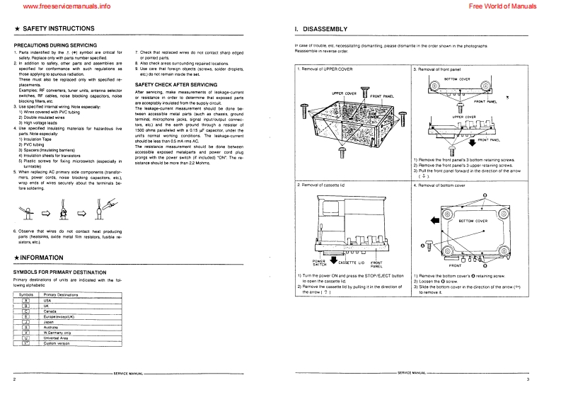 www.freeservicemanuals.infoFree World of ManualsAKAISERVICE MANUALAKAI8880D社2O▣O假”TMODEL GX-95MKIISTEREO CASSETTE DECKMODELGX-75MKIIMODELGX-95MKIISPECIFICATIONSTrack System ...............4 track 2 channel StereoT,H,D,06%Heads.…Erase H0adx1Input Sensitivity/LC-OFC SGX Head for recordingImpedance*Line70mV147k2LC-OFC SGX Head for playbackCD/DAT Direct IN......240mV/47k2Output Level/ImpedanceMotors .......................FG Servo D.D.motor for capstanLine............388mV1200Qdrive x1Headphones .............1.3mWw(8Q)DC motor for reel drive x1Power Requirements ......220V,50Hz for Europe exept UKDC motor for cam drive tape240V,50Hz for UK (GX-95MKIIeject/loading x1ONLY)Wow&Flutter…0.04%DINDimensions ..................GX-95MKI0.025%WRMS460(W)×155(H)×350(D)mmTape winding time .........85 sec.(C-60)GX-75MKIl:Frequency Response425(W)×154H)350(D)mmNormal......................15Hz to 19,000Hz+3dBWeight........GX-95MKIl :10.1kgCr02”15Hzto20,000Hz±3dBGX-75MKIl :9.0kgMetal ......................15Hzto22,000Hz±3dBS/N.........59dB (Measured via Metal tapewith peak recording level)Dolby B type NR switch ON:Improves up to 5dB at 1kHz,10dBStandard accessoriesabove 5kHzConnection cords ......RCA pin cord x2Dolby C type NR switch ON:Remote control unit ...x1Improves up to 15dB at 500Hz.Dry batteries ............R6 (AA)size x220dB at 1kHz to 10kHzFor improvement purposes,specifications and design are subject to change without notice.Dolby noise reduction and HX Pro headroom extension manufactured under llcense from Dolby Labora-tories Licensing Corporation.HX Pro originated by Bang Olufsen.*"DOLBY",the double-D symbol DO and "HX PRO"are trademarks of Dolby Laboratories Licensing Corpor-ation.