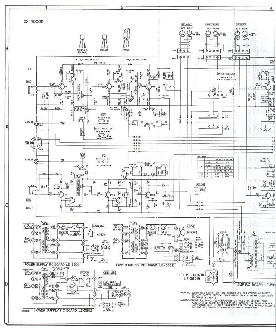 RASE HEA国PB HEADLEFT RIGHTLEFT RIGHT)2T2参4L727中中oozob由击古TR25 25KSCANHONTVU METE网212LEFTK ITRACK SELECTORMuTEMONITO网TP四.4472LINE OU团LEFTC1LA470.6V-AWPHONES的3LINE OUT46RIGHT10%WV AC 92.WV AC54-2OUTOUTYU METERACH4TREC SW12小02:306hUPNACIOOVT制2,325G451L规00U/Ta0400POWERAC1102402D34中120/4G7001P.C BOARDE-5801BAMP P.C BOARD LE-5801APOWER SUPPLY P.C BOARD LE-580203+2/230V ACNING:AINDICATES SAFETY CRITICAL COMPONENTS.FOR CONTINUED SAFETY,COMPONENTS ONLY WITH ANUFACTURER'S50wV (J)GX-4000DTISSEMENT:IL.INOIQU LES COMPOSCRITIQUES DE SURETE.POURLEAKAGECAPACITORSSCHEMATIC DIAGRAMLE FONC8oR5No.2-11561840A