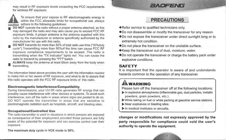 BAOFENGTMPORTABLE TWO-WAY RADIOUV-3R USER'S MANUALDual Band/Dual Watch High Mumination LED FMM Radio6PERFECT UPGRADEDual Display/Dual Band AntennaLCD Monu Cperaons Battery SsverPC Programming FM Rado a Dus Bund Oual WalchCTCSSICDCSS VOXEmergoncy Alam 99 ChamnsWiss/Namow BarcwidthUAAN AOEOMOTww.powerphone.com.cnF@C∈06780