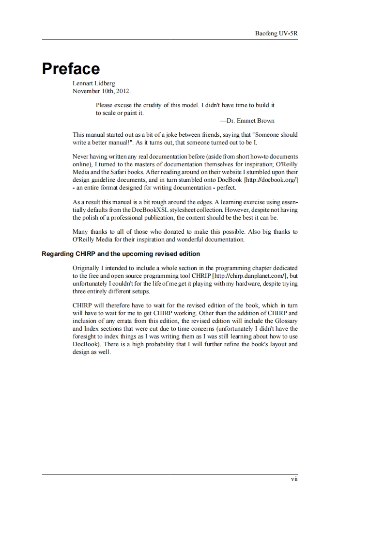 Baofeng_UV-5R_Revised_Manual操作说明书手册1找手册网30天前发布关注私信0.85MB74页033Baofeng_UV-5R_Revised_Manual操作说明书手册1此内容为付费资源,请付费后查看¥19¥21黄金会员免费钻石会员免费登录购买付费资源 第1页 / 共74页 第2页 / 共74页 第3页 / 共74页 第4页 / 共74页 第5页 / 共74页 第6页 / 共74页 第7页 / 共74页 第8页 / 共74页 第9页 / 共74页 第10页 / 共74页 试读已结束,还剩64页,您可下载完整版后进行离线阅读 THE END宝峰 文本预览 Baofeng UV-5RThe(Chinese)RadioDocumentation Projecthttp://radiodoc.github.com/Lennart Lidberg 查看更多 收起部分 喜欢就支持一下吧收藏